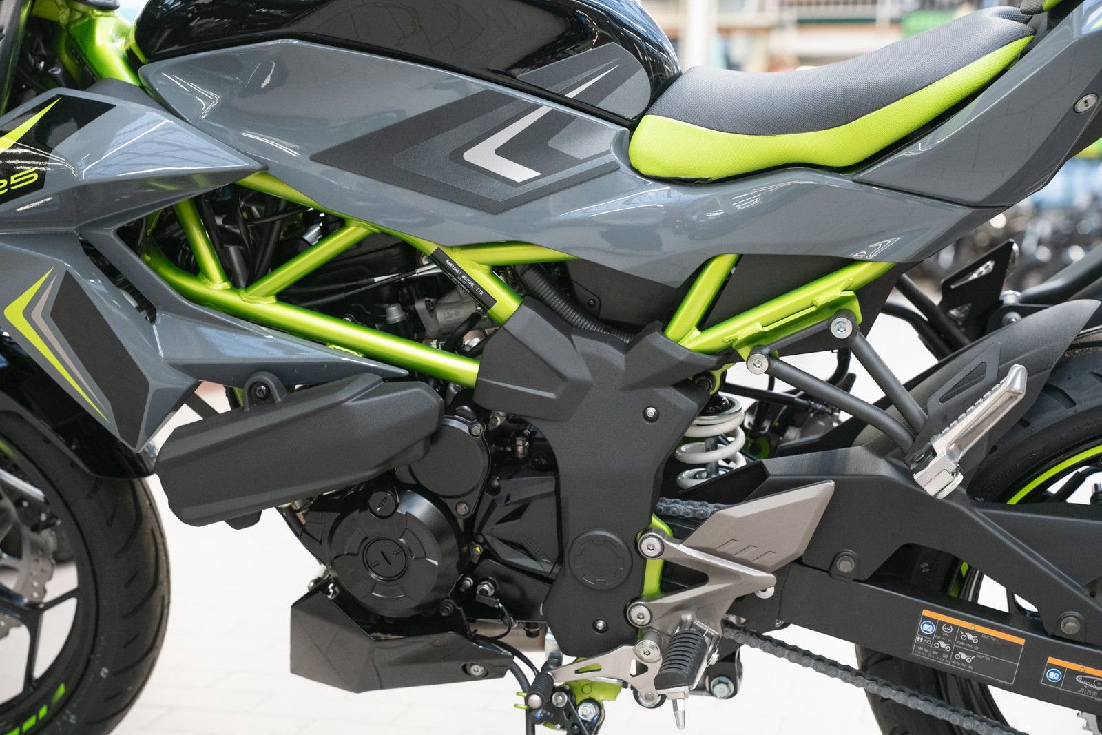 Der freiliegende Gitterrohrrahmen verbindet sich mit der minimalistischen, aggressiven Z-Verkleidung und lädt zu sportlicher Fahrweise ein.