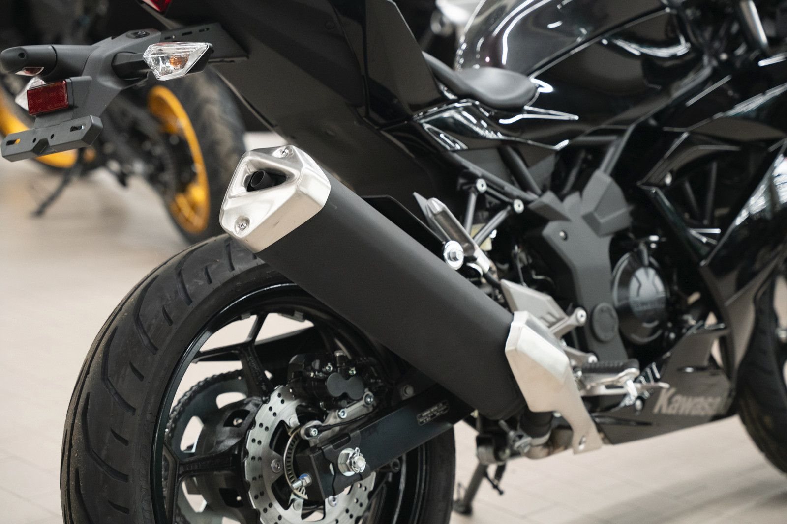 Die schmale Silhouette, die vom Kawasaki Racing Team inspiriert wurde, weist in Richtung Ninja ZX-10R.