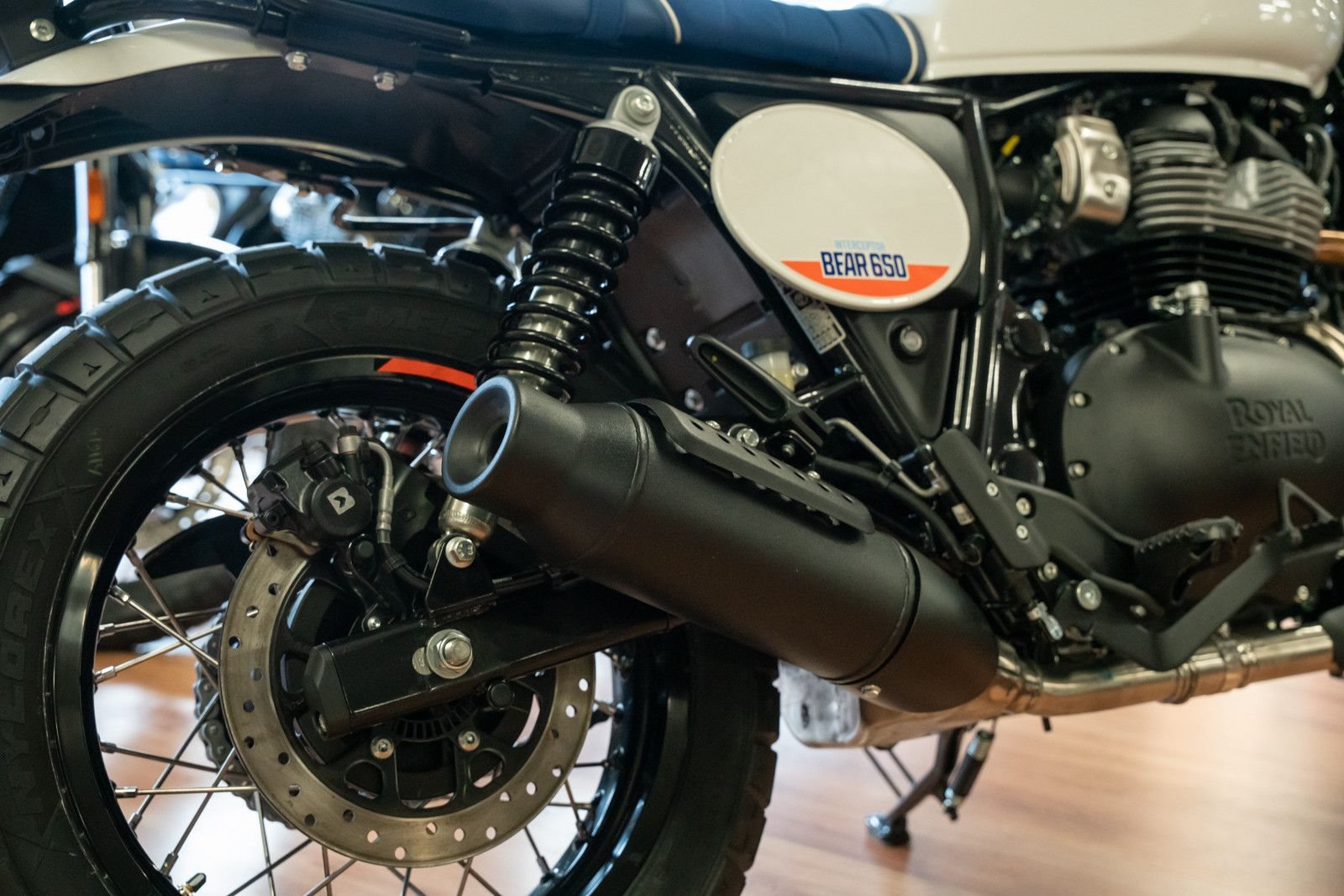 Mit seinem widerstandsfähigen Gehäuse in schwarzem Premium-Finish verleiht er der Bear 650 genau den robusten, entschlossenen Look, den man von einer Scrambler erwartet.