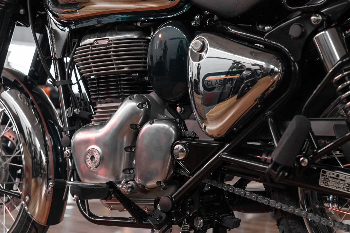 Wir bieten hier eine fabrikneue Royal Enfield Classic 350 in der spektakulären Lackierung Emerald Green an.
