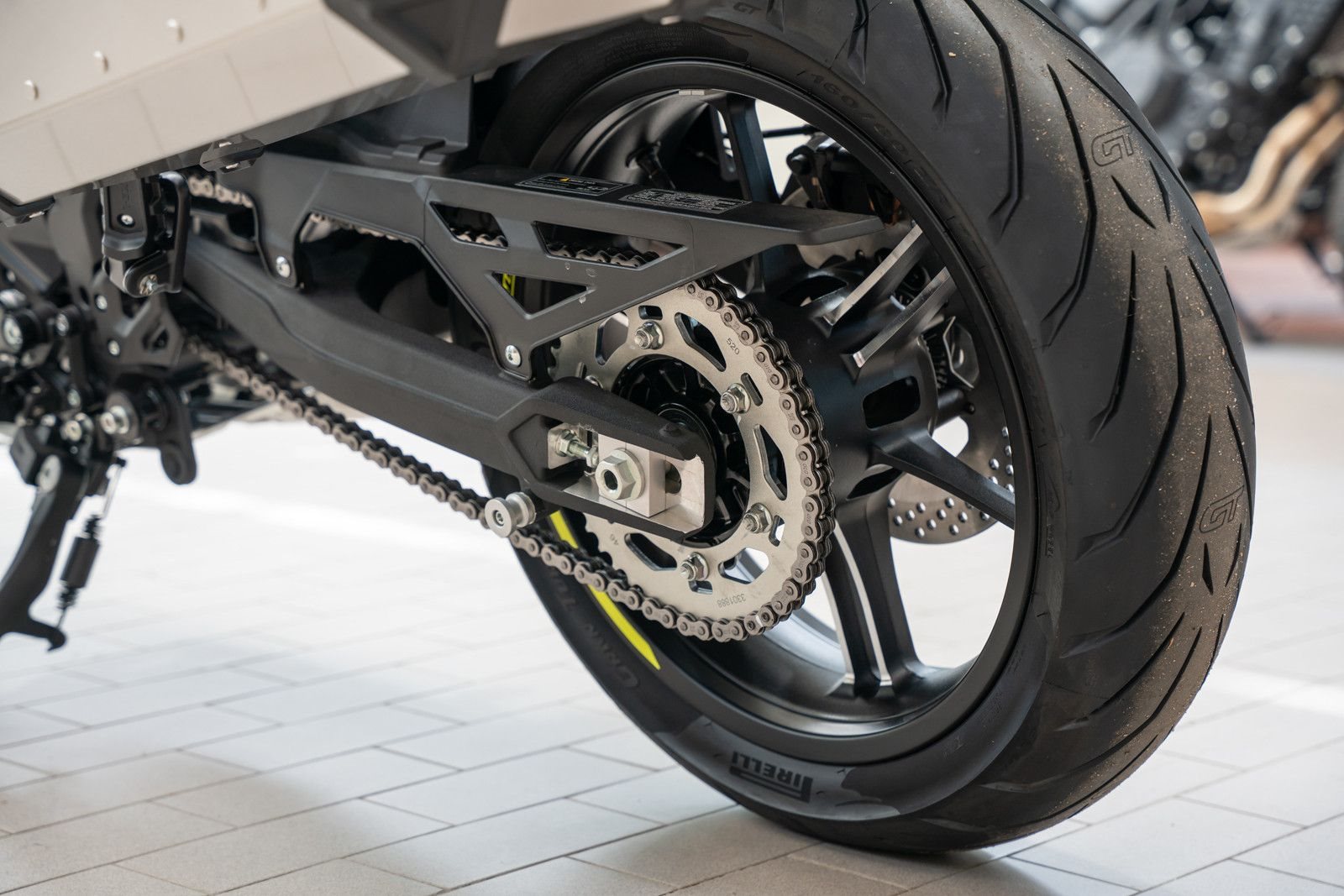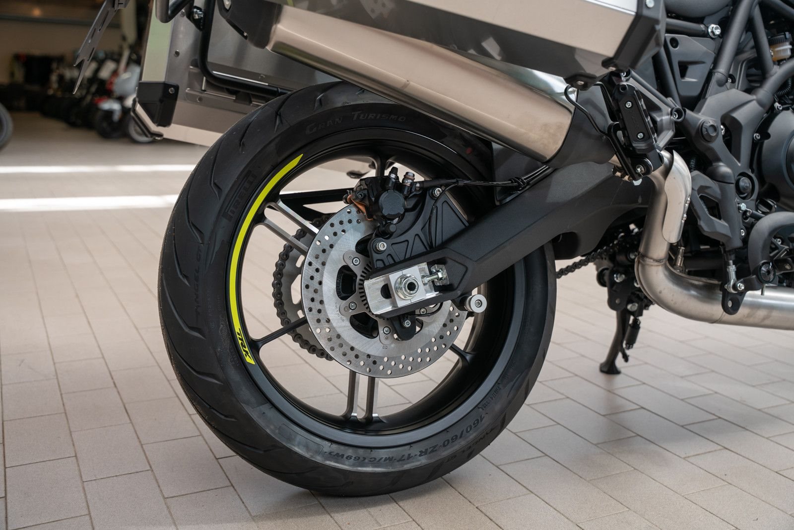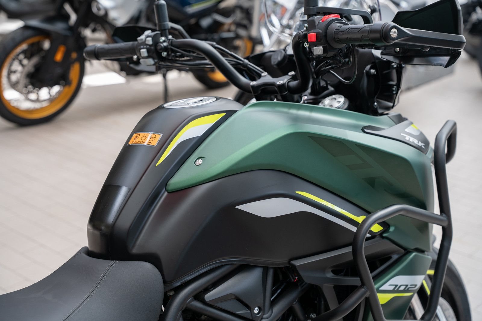 Ausgestattet mit 19-Zoll-Vorderrädern und 17-Zoll-Hinterrädern sowie einem 20-Liter-Tank ist die TRK 702 X für lange Reisen ausgelegt.
