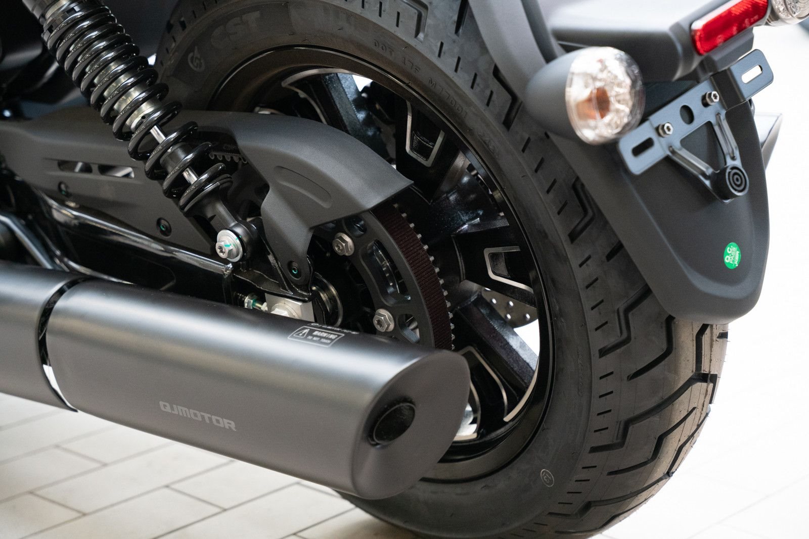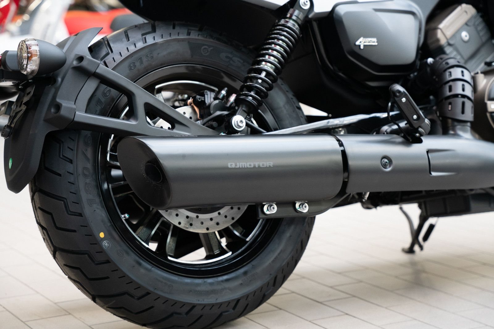 - Bereifung: Massive Optik durch 130er vorne und 180er hinten auf 16-Zoll-Felgen