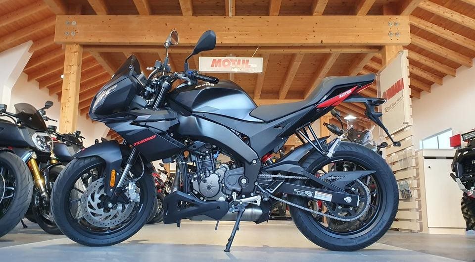 Die Tuono 125 steht fuer junge Fahrer genauso wie der Name "Tuono" fuer die perfekte Mischung aus Leistung und Fahrspass: eine Gleichung aus Ingenieurskunst und Leidenschaft, geschmiedet auf der Rennstrecke und bereit fuer die Strasse. Sie ist 125 cm3-Motorrad mit Aluminiumrahmen und serienmaessiger Ausstattung mit einer Upside-Down-Gabel, Zweikanal-ABS und Traktionskontrolle. Damit setzt sie Massstaebe in ihrer Klasse in puncto Leistung und Sicherheit. Angetrieben von einem zuverlaessigen und modernen Euro 5+ Motor, ist die Aprilia Tuono 125 pure Energie im Achtelliter-Format.