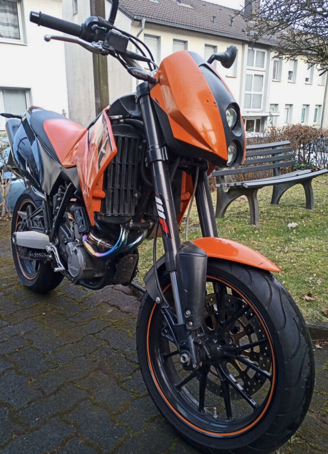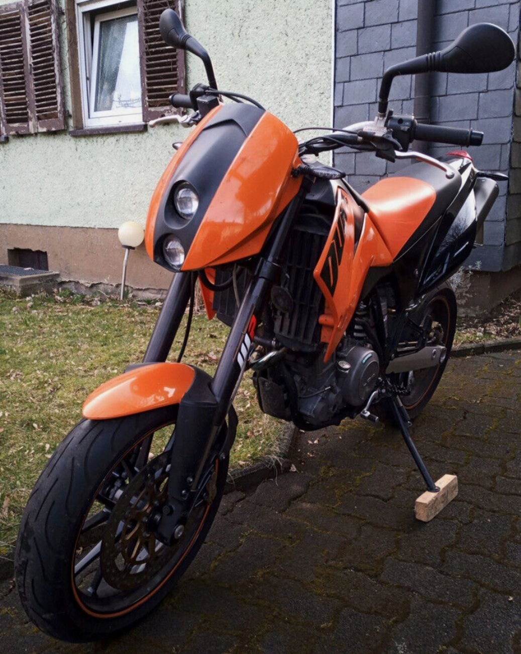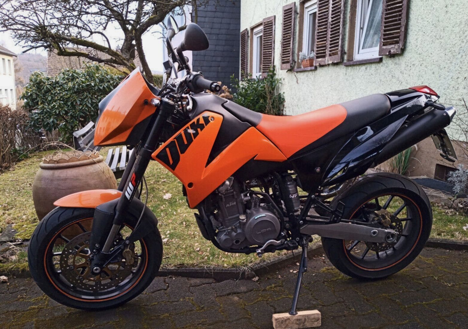 Unverbastelter Originalzustand mit dem begehrten High Flow Zylinderkopf, voll einstellbares White Power Fahrwerk, original KTM LED-Blinker Vorne und Hinten (mit E-Zeichen) nachgerüstet, 2x helle (legale) OSRAM Nightbreaker Lampen.