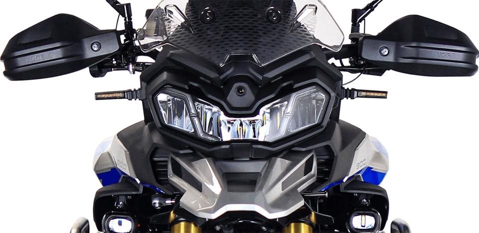 Von der einstellbaren Federung mit langem Federweg ueber eine abschaltbare Traktionskontrolle und das Voll-LED-Licht fuer optimale Sichtbarkeit bis hin zu Sitzheizung hier haben die VOGE Konstrukteure an alles gedacht. Und mit einer Sitzhoehe von nur 850 Millimetern ist auch fuer etwas kleinere Fahrer eine gute Standsicherheit an der Ampel oder beim Rangieren gewaehrleistet. Fuer noch mehr Sicherheit sorgen dynamisches Bremslicht, ein Toten-Winkel-Assistent sowie eine Kollisionswarnung, die bei zu dichtem Auffahren des rueckwaertigen Verkehrs das Ruecklicht pulsierend aktiviert, um nachfolgende Fahrer rechtzeitig zu warnen.