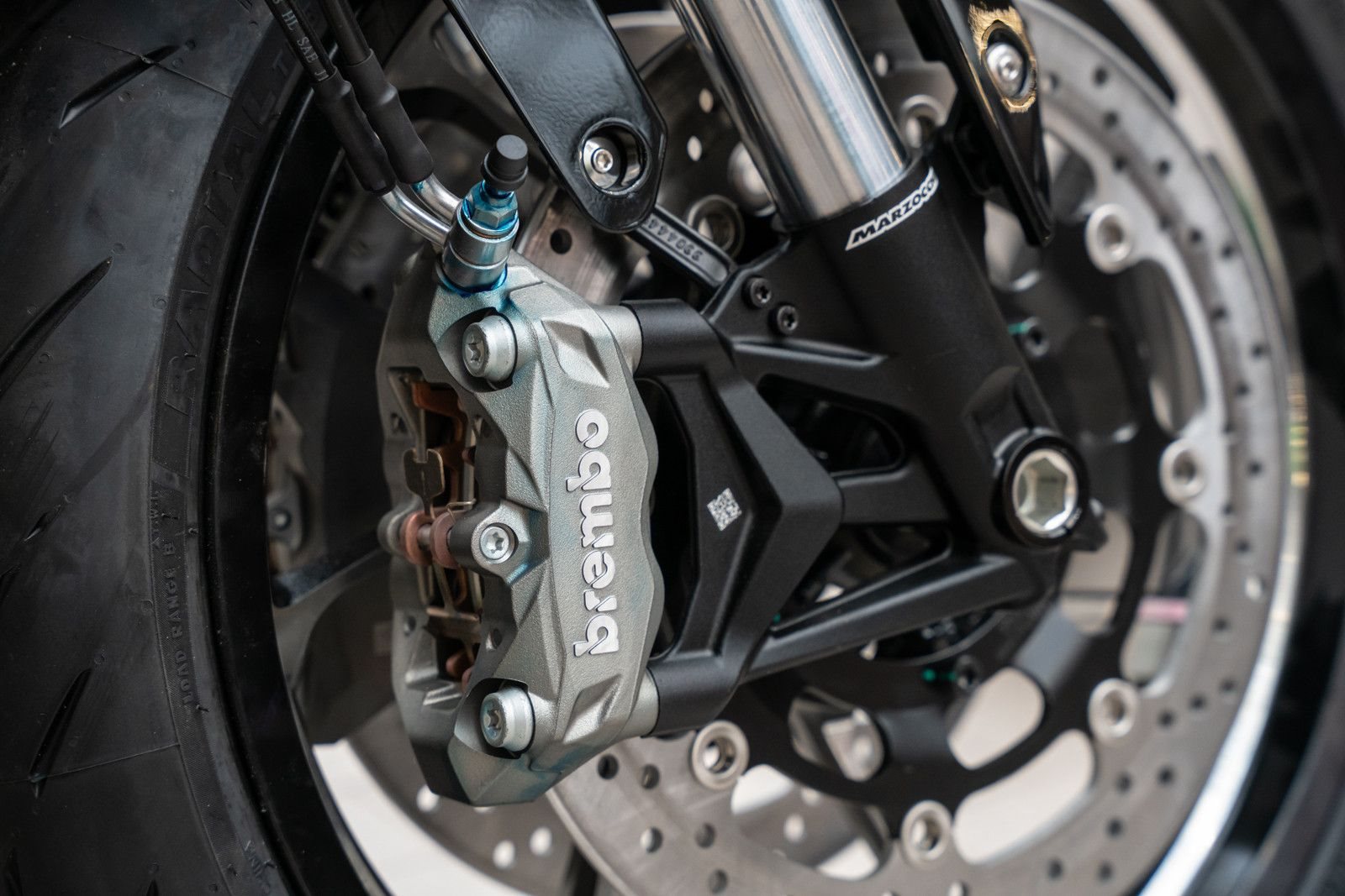 • Premium-Bremsen: BREMBO Scheibenbremsen mit ABS für maximale Sicherheit und Verzögerung.