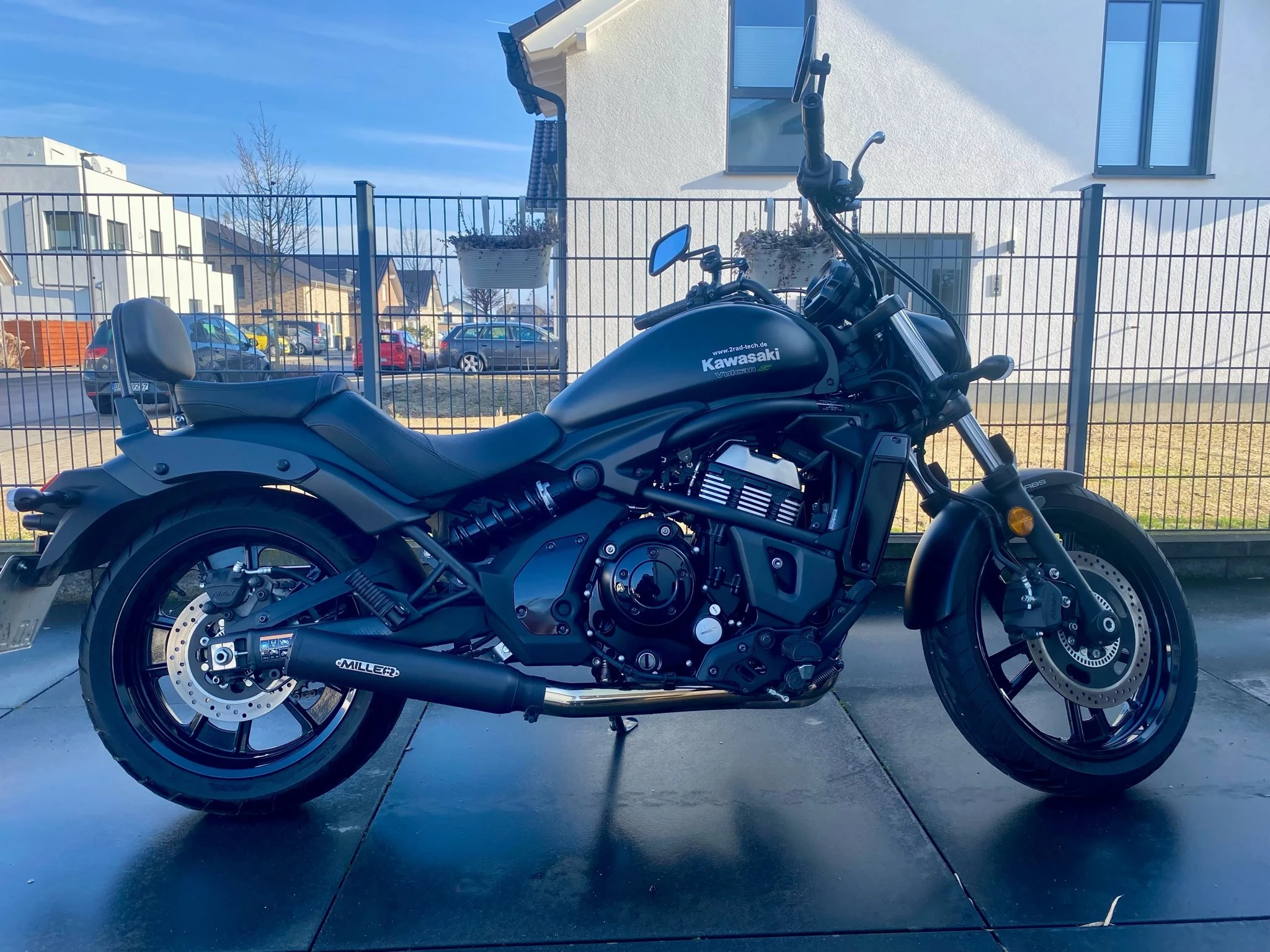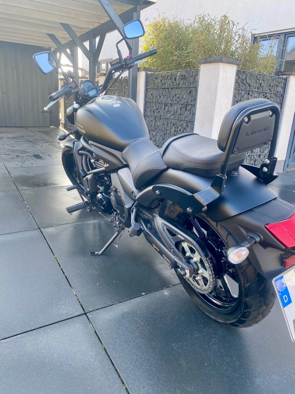 Mit nur 6.525 km Laufleistung ist sie kaum gefahren und technisch wie optisch top. Verbaut ist ein Miller Auspuff mit Eintragung, der für einen satten, kernigen Sound sorgt. Der Originalauspuff ist selbstverständlich dabei und im Kaufpreis inkludiert. Zusätzlich ist eine originale Kawasaki Sissybar montiert ideal für Sozius oder Gepäck und optisch perfekt passend.