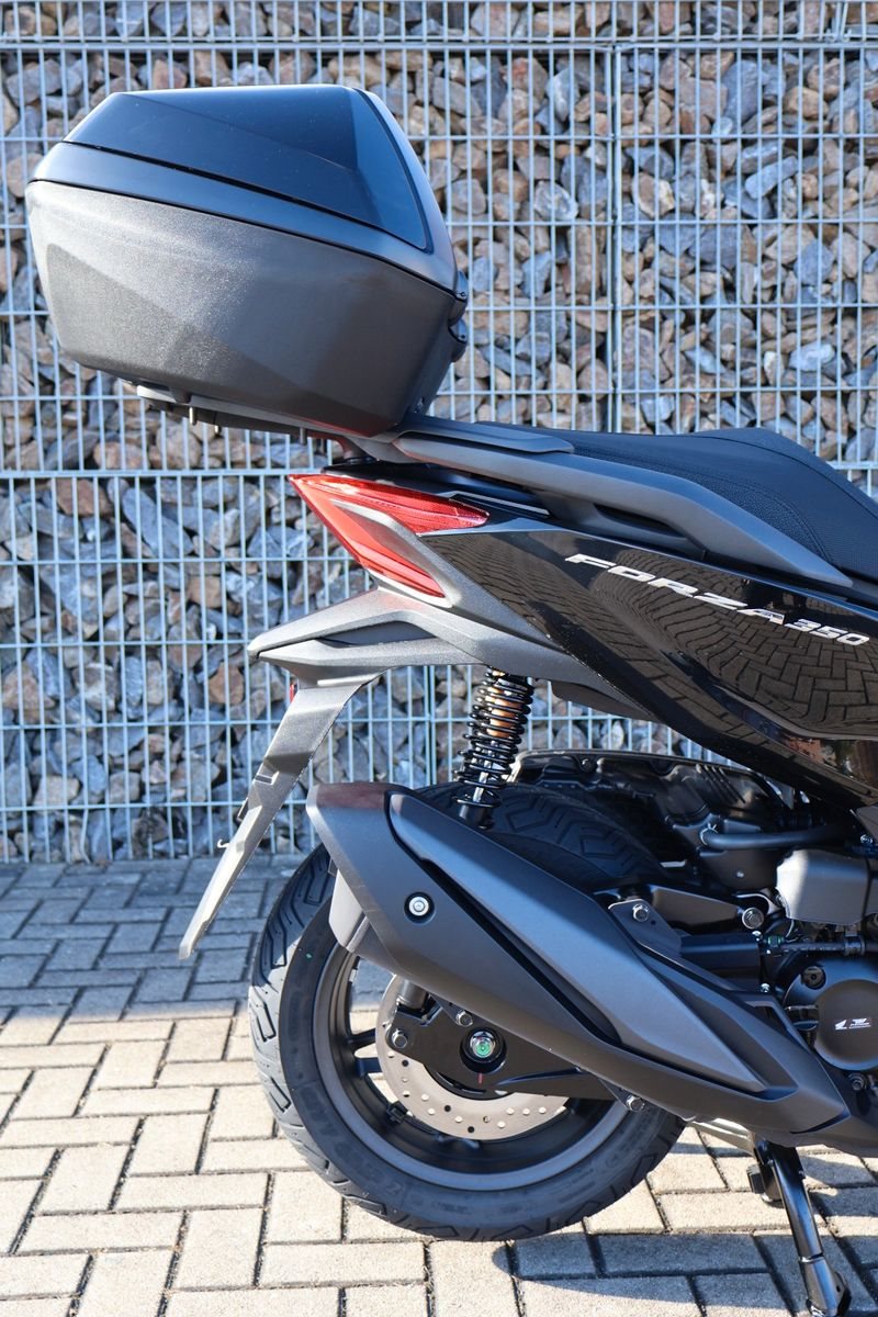 Der Forza 350 setzt hohe Designmaßstäbe und ist ein flinkes Gesamtkunstwerk, das mit ausgezeichneter Aerodynamik und atemberaubendem Aussehen überzeugt. Die neu gestaltete Frontverkleidung, die LED-Scheinwerfer und das Rücklicht nach dem Vorbild des Topmodells Forza 750 ergeben ein elegantes Gesamtbild und leiten den Fahrtwind so über die Maschine, dass der Fahrer auch bei schneller Fahrweise kaum Winddruck spürt, was den Fahrkomfort deutlich verbessert. Und dank des elektrischen Windschilds kannst du auf Knopfdruck zwischen Windschutz und einer kühlenden Brise wählen.