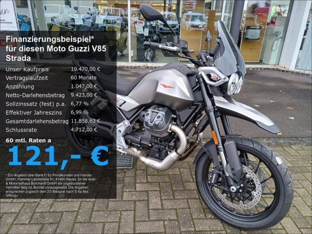Eine neue PerspektiveEgal, wie lang oder kurz Ihre Reise ist oder wohin Sie fahren, jeder Ausflug ist die perfekte Gelegenheit, den Schlüssel umzudrehen und loszufahren. Mit dem 5-Zoll-TFT-Display sind Sie gut aufgehoben. Die drei Fahrmodi Sport, Road und Rain bieten für jede Bedingung die optimale Lösung. Außerdem gibt es eine praktische USB-Buchse, die zur Standardausrüstung gehört, und eine Vielzahl von Zubehörteilen, die Sie für ein wirklich komplettes Fahrerlebnis auf Ihrer V85 Strada auswählen können.