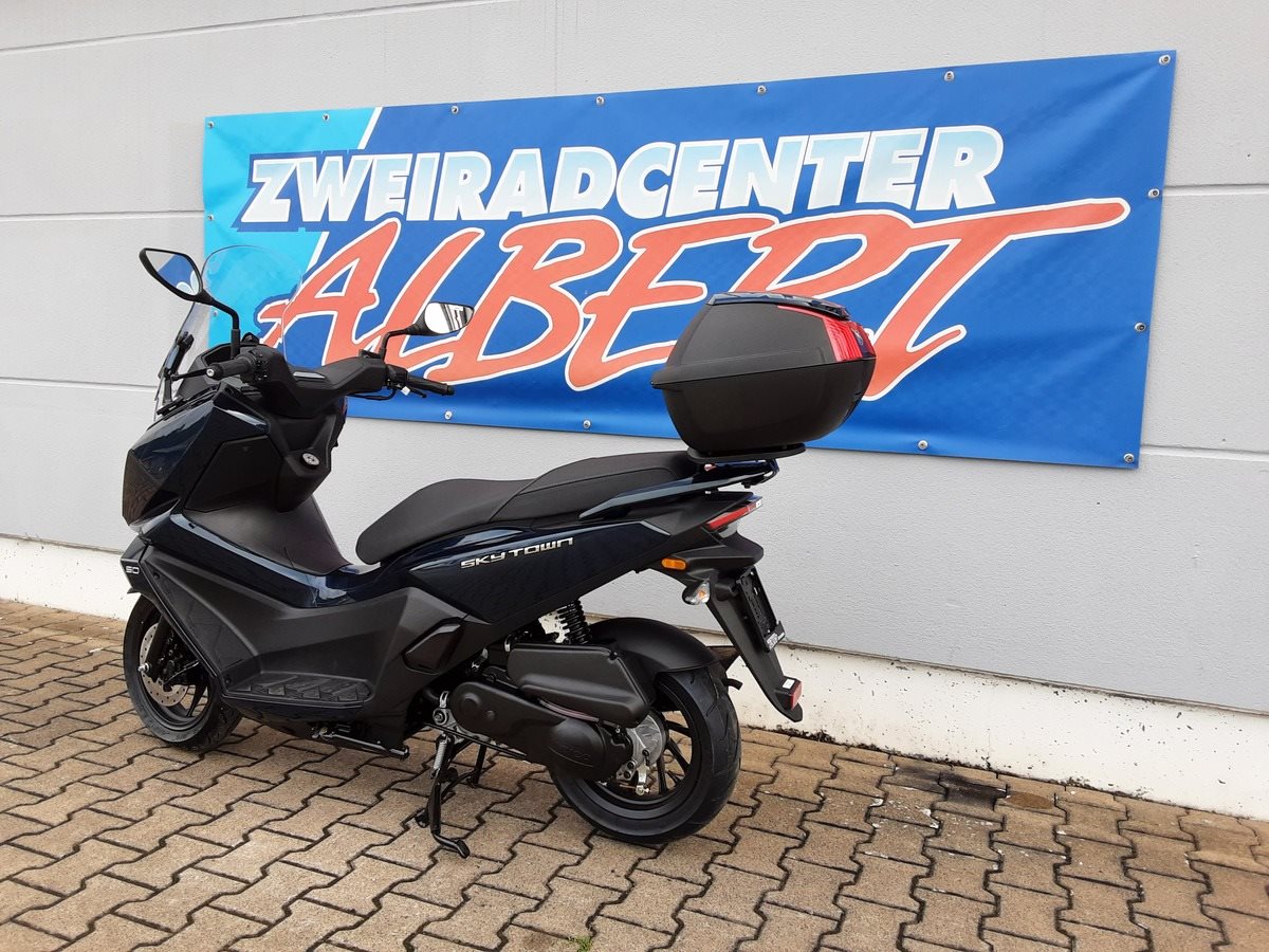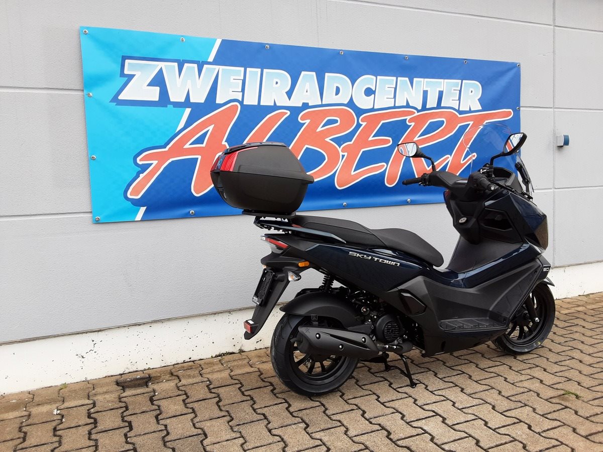 Mit Leichtigkeit ans Ziel. Der SKY TOWN 50i ist wie gemacht für das urbane Leben: wendig, stylisch und erstaunlich durchdacht. Sein Green Power -Motor liefert nicht nur eine spürbar bessere Beschleunigung als herkömmliche 50-ccm-Roller, sondern glänzt auch mit beeindruckender Effizienz. Optimierte Kühlkanäle und eine ausgeklügelte Nockenwelle sorgen für sanftes Fahrverhalten, geringen Verbrauch - und eine lange Lebensdauer. Mit gerade einmal 2,2 Litern auf 100 km und einem 7-Liter-Tank schafft der SKY TOWN locker 300 Kilometer - ein echter Reichweiten-Champion im Stadtverkehr. Sein Look: modern und selbstbewusst. Mit elegantem Windschild, LED-Scheinwerfer und dem edlen Farbton starry night blue bringt der Roller nicht nur Licht, sondern auch Stil in den Alltag. Das gut ablesbare LCD-Display und die zwei USB-Anschlüsse (Typ A & C) sorgen unterwegs für zusätzlichen Komfort. Die stabile Aluminium-Rahmenstruktur sorgt für ein sicheres Fahrgefühl, ob im Stadttrubel oder auf freier Strecke. Im serienmäßigen Topcase findet sich Platz für Helm oder Einkauf - und unter der Sitzbank passt sogar ein Integralhelm. Der KYMCO SKY TOWN 50i: gemacht für alle, die mehr von ihrem Stadtroller erwarten. Dies ist ein deutsches Modell mit 2 Jahren Kymco Gewährleistung ab Erstzulassung. * Der angegebene Preis ist ein Barzahlungspreis. * Finanzierung und Inzahlungnahme gerne gegen Aufpreis möglich * Details zu diesem Fahrzeug bekommen Sie direkt bei uns. Schreiben Sie uns eine email oder ein Fax mit Ihrer Rufnummer und dem Zeitraum in dem Sie am besten zu erreichen sind. * Wir rufen Sie umgehend zurück! Wir sind für Sie da: MONTAGS GESCHLOSSEN Di-Fr 8.30 - 18.00 Uhr Tel: 09363 99188 Sa 9.30 - 13.00 Uhr Fax: 09363 99188 facebook.com\albertzweiradcenter albert-zweiradcenter.de