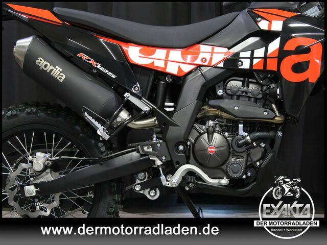 Der hochfeste Brückenrahmen aus Stahl, die Zweiarmschwinge mit Mono-Federbein und die 41 mm Upside-down-Gabel bieten ideale Voraussetzungen für authentisches Offroad-Vergnügen. Die RX 125 ist optimal für den Einsatz auf Straßen und im Gelände gerüstet, dank ihrer vorderen Bremsanlage mit 1-Kanal-ABS und Stoppie-Control.