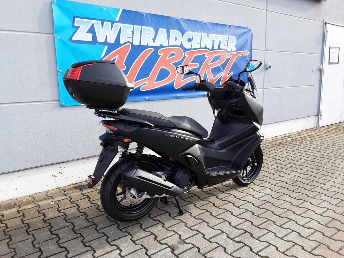 Mit Leichtigkeit ans Ziel. Der SKY TOWN 125i ABS verbindet Dynamik mit umweltbewusster Effizienz. Das leichte Chassis mit stabiler Aluminium-Rahmenstruktur sorgt für ein müheloses, kontrolliertes Fahrgefühl. Dank kurzem Radstand, nur 126 kg Gewicht und einer optimalen Sitzhöhe ist dieser Roller besonders wendig und für Fahrer jeder Körpergröße angenehm zu handhaben - perfekt für enge Straßen. Das ABS Bremssystem von Bosch und die automatisch aktivierten LED-Lichter bieten zusätzliche Sicherheit im Stadtverkehr, während das Windschild den Fahrkomfort verbessert. Der praktische Stauraum unter der Sitzbank bietet Platz für einen Integralhelm und das serienmäßige Topcase erhöht die Kapazität weiter. Ein USB-Anschluss (Typ A & C) hält mobile Geräte geladen, während das LCD-Dashboard jederzeit klare Sicht auf alle wichtigen Infos bietet. Der SKY TOWN 125i ABS ist die perfekte Wahl für alle, die einen agilen, nachhaltigen Scooter für den urbanen Alltag suchen. Dank Euro5+ Standard und einem Verbrauch von nur 2,5 Litern auf 100 km ist dieser der Roller besonders sparsam und emissionsarm. Dies ist ein deutsches Modell mit 2 Jahren Kymco Gewährleistung ab Erstzulassung. * Der angegebene Preis ist ein Barzahlungspreis. * Finanzierung und Inzahlungnahme gerne gegen Aufpreis möglich * Details zu diesem Fahrzeug bekommen Sie direkt bei uns. Schreiben Sie uns eine email oder ein Fax mit Ihrer Rufnummer und dem Zeitraum in dem Sie am besten zu erreichen sind. * Wir rufen Sie umgehend zurück! Wir sind für Sie da: MONTAGS GESCHLOSSEN Di-Fr 8.30 - 18.00 Uhr Tel: 09363 99188 Sa 9.30 - 13.00 Uhr Fax: 09363 99188 facebook.com\albertzweiradcenter albert-zweiradcenter.de
