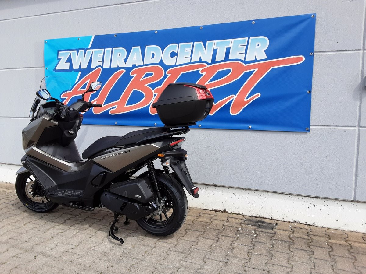 Mit Leichtigkeit ans Ziel. Der SKY TOWN 125i ABS verbindet dynamisches Fahrverhalten mit umweltbewusster Effizienz - ideal für den urbanen Alltag. Der moderne 125-ccm-Motor mit 11 PS ist mit dem innovativen Multi-Vortex-System ausgestattet, das nicht nur die Emissionen reduziert, sondern auch den Kraftstoffverbrauch auf nur 2,5 Liter pro 100 Kilometer senkt. Dank Euro5+-Zulassung erfüllt der Scooter höchste Umweltstandards. Das stabile, leichte Aluminium-Chassis, ein kurzer Radstand und nur 126 Kilogramm Gewicht sorgen für ein agiles, kontrolliertes Handling - perfekt für schmale Straßen und dichten Stadtverkehr. Die Sitzhöhe ist so gewählt, dass Fahrerinnen und Fahrer unterschiedlichster Körpergrößen bequem und sicher unterwegs sind. Für zusätzliche Sicherheit sorgt das ABS-Bremssystem von Bosch, während automatisch aktivierte LED-Leuchten auch bei wechselnden Lichtverhältnissen optimale Sicht gewährleisten. Im Alltag punktet der SKY TOWN 125i ABS mit einem praktischen Stauraum unter der Sitzbank, der Platz für einen Integralhelm bietet, sowie mit einem serienmäßigen Topcase zur Erweiterung des Ladevolumens. Ein USB-Anschluss (Typ A & C) ermöglicht das bequeme Laden mobiler Geräte. Das LCD-Dashboard zeigt alle relevanten Fahrdaten übersichtlich an, das Windschild sorgt zudem für verbesserten Komfort bei längeren Strecken. Die Fachzeitschrift Motorrad hat den Kymco Sky Town 125i getestet und zeigt, warum der sparsame, gut ausgestattete City-Roller mit starkem Komfort und moderner Technik im urbanen Alltag überzeugt Dies ist ein deutsches Modell mit 2 Jahren Kymco Gewährleistung ab Erstzulassung. * Der angegebene Preis ist ein Barzahlungspreis. * Finanzierung und Inzahlungnahme gerne gegen Aufpreis möglich * Details zu diesem Fahrzeug bekommen Sie direkt bei uns. Schreiben Sie uns eine email oder ein Fax mit Ihrer Rufnummer und dem Zeitraum in dem Sie am besten zu erreichen sind. * Wir rufen Sie umgehend zurück! Wir sind für Sie da: MONTAGS GESCHLOSSEN Di-Fr 8.30 - 18.00 Uhr Tel: 09363 99188 Sa 9.30 - 13.00 Uhr Fax: 09363 99188 facebook.com\albertzweiradcenter albert-zweiradcenter.de