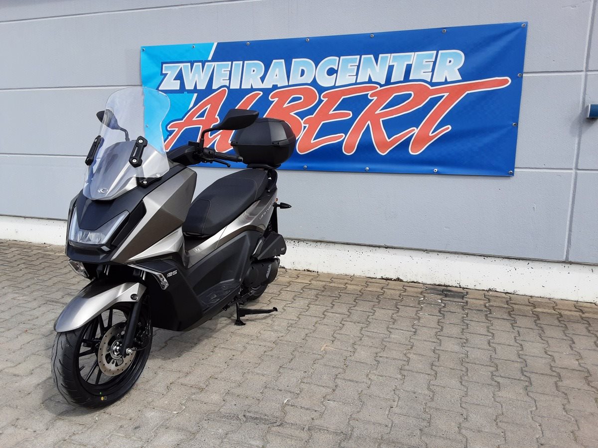 Mit Leichtigkeit ans Ziel. Der SKY TOWN 125i ABS verbindet dynamisches Fahrverhalten mit umweltbewusster Effizienz - ideal für den urbanen Alltag. Der moderne 125-ccm-Motor mit 11 PS ist mit dem innovativen Multi-Vortex-System ausgestattet, das nicht nur die Emissionen reduziert, sondern auch den Kraftstoffverbrauch auf nur 2,5 Liter pro 100 Kilometer senkt. Dank Euro5+-Zulassung erfüllt der Scooter höchste Umweltstandards. Das stabile, leichte Aluminium-Chassis, ein kurzer Radstand und nur 126 Kilogramm Gewicht sorgen für ein agiles, kontrolliertes Handling - perfekt für schmale Straßen und dichten Stadtverkehr. Die Sitzhöhe ist so gewählt, dass Fahrerinnen und Fahrer unterschiedlichster Körpergrößen bequem und sicher unterwegs sind. Für zusätzliche Sicherheit sorgt das ABS-Bremssystem von Bosch, während automatisch aktivierte LED-Leuchten auch bei wechselnden Lichtverhältnissen optimale Sicht gewährleisten. Im Alltag punktet der SKY TOWN 125i ABS mit einem praktischen Stauraum unter der Sitzbank, der Platz für einen Integralhelm bietet, sowie mit einem serienmäßigen Topcase zur Erweiterung des Ladevolumens. Ein USB-Anschluss (Typ A & C) ermöglicht das bequeme Laden mobiler Geräte. Das LCD-Dashboard zeigt alle relevanten Fahrdaten übersichtlich an, das Windschild sorgt zudem für verbesserten Komfort bei längeren Strecken. Die Fachzeitschrift Motorrad hat den Kymco Sky Town 125i getestet und zeigt, warum der sparsame, gut ausgestattete City-Roller mit starkem Komfort und moderner Technik im urbanen Alltag überzeugt Dies ist ein deutsches Modell mit 2 Jahren Kymco Gewährleistung ab Erstzulassung. * Der angegebene Preis ist ein Barzahlungspreis. * Finanzierung und Inzahlungnahme gerne gegen Aufpreis möglich * Details zu diesem Fahrzeug bekommen Sie direkt bei uns. Schreiben Sie uns eine email oder ein Fax mit Ihrer Rufnummer und dem Zeitraum in dem Sie am besten zu erreichen sind. * Wir rufen Sie umgehend zurück! Wir sind für Sie da: MONTAGS GESCHLOSSEN Di-Fr 8.30 - 18.00 Uhr Tel: 09363 99188 Sa 9.30 - 13.00 Uhr Fax: 09363 99188 facebook.com\albertzweiradcenter albert-zweiradcenter.de