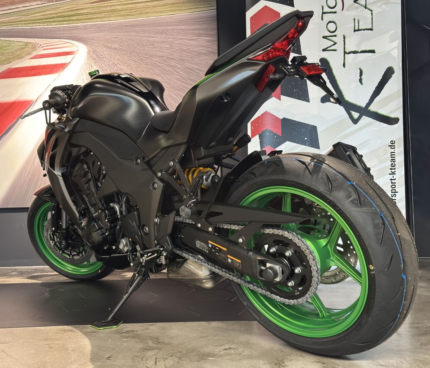 Die Z1100 verkörpert den Höhepunkt von Kawasakis einzigartiger Sugomi-Philosophie in Performance und Design - komprimiert in unserem hubraumstärksten Supernaked Z-Modell. Sie übernimmt ihre verdiente Rolle als neue Spitzenreiterin in der Familie der Z-Modelle mit Saugmotor.