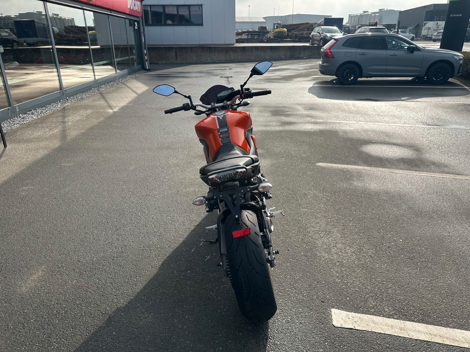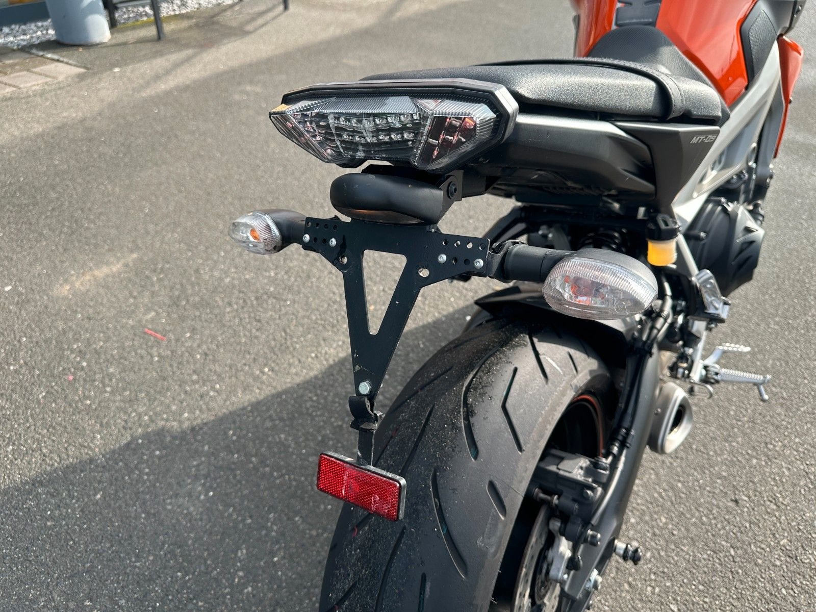 • Kennzeichenhalter an der Schwinge bietet weniger Spritzschutz als ein herkömmlicher