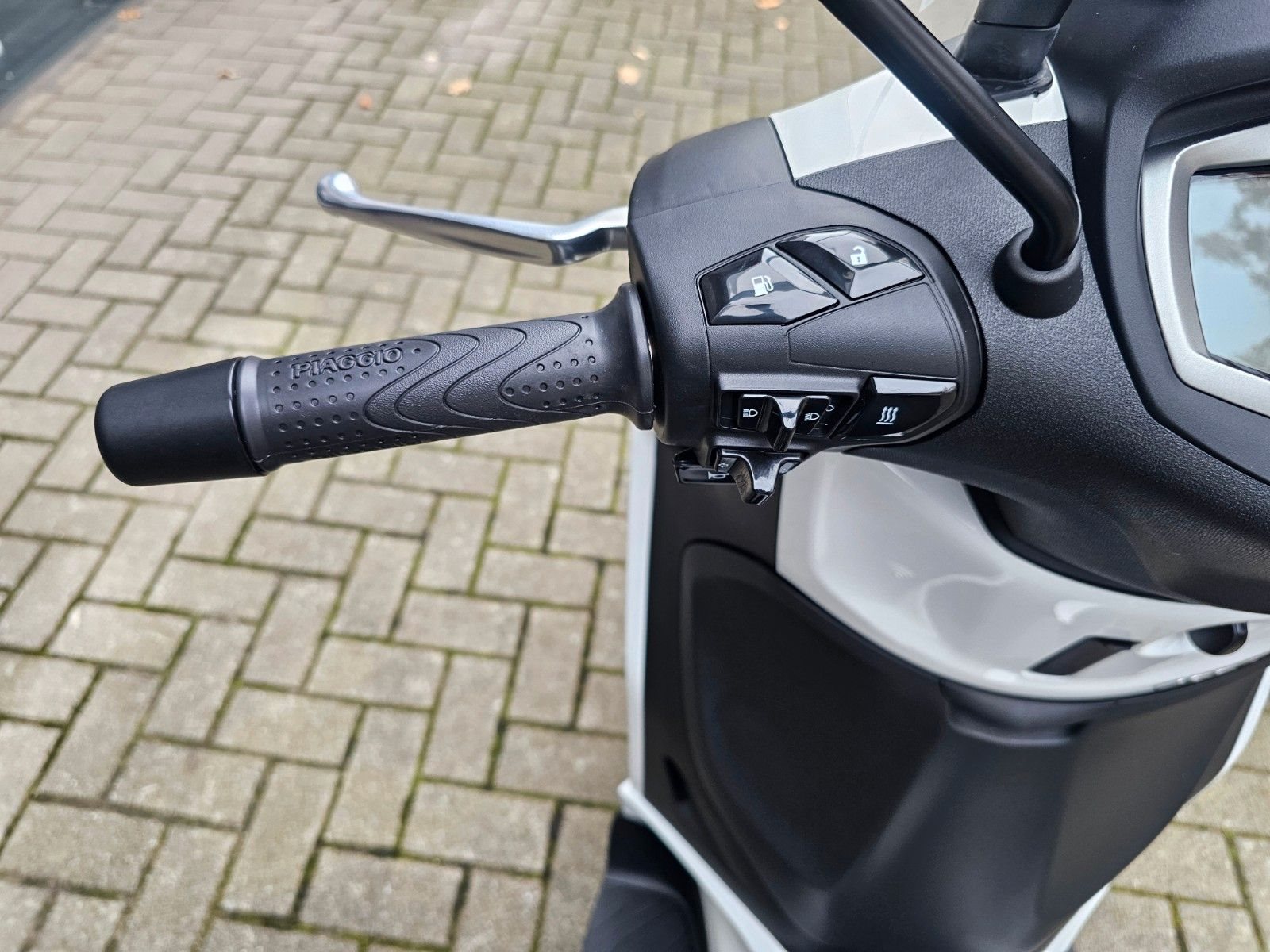 • Keyless System und MIA-Konnektivität Das 5,5-Zoll-LCD-Display des Piaggio Beverly zeigt alle Fahrinformationen zentral an, darunter Tachometer und Drehzahlmesser, sowie Außentemperatur, Tankanzeige und Reichweite. Dank des serienmäßigen Piaggio MIA-Konnektivitätssystems können zusätzliche Informationen direkt auf dem Display abgerufen werden, darunter Anruf- und Nachrichtenbenachrichtigungen. Zudem lassen sich Telefonate, Musik und weitere Funktionen via Bluetooth steuern. Mit dem Keyless System wird das Starten des Motors und das Öffnen der Sitzbank besonders einfach - ganz ohne Schlüssel.