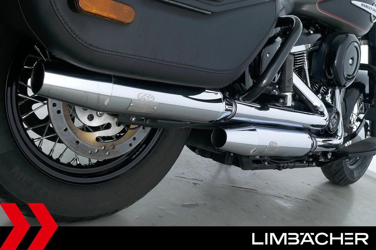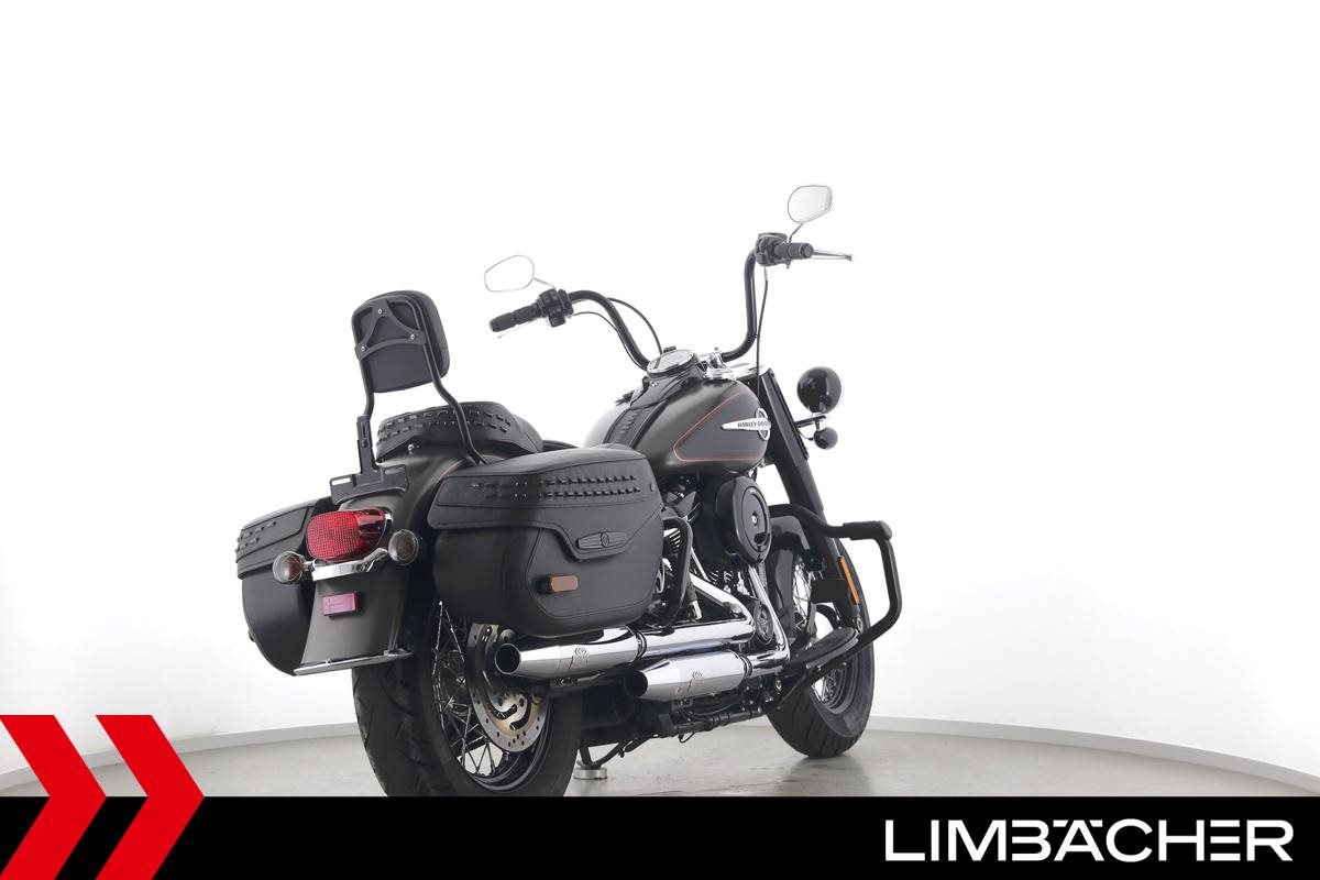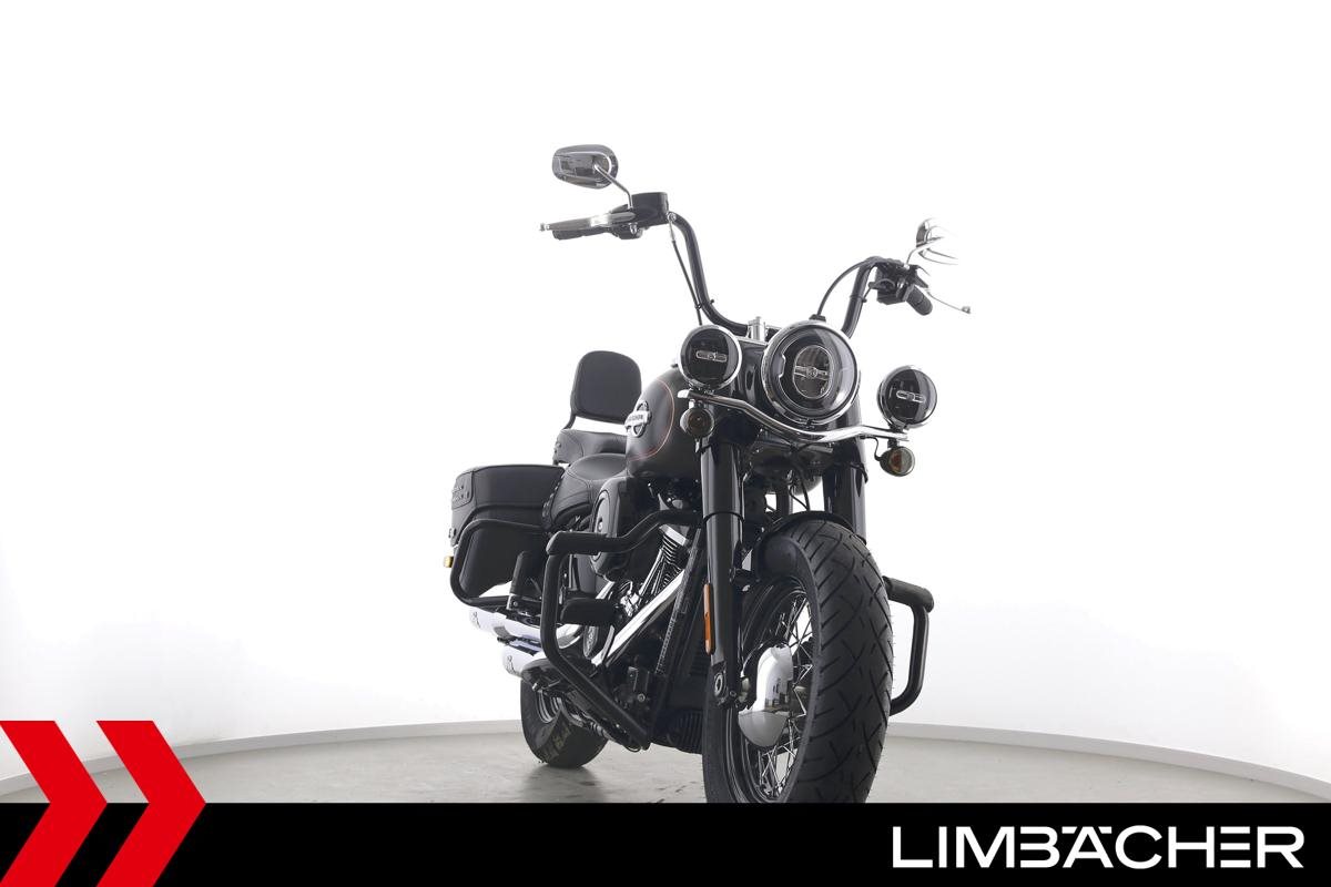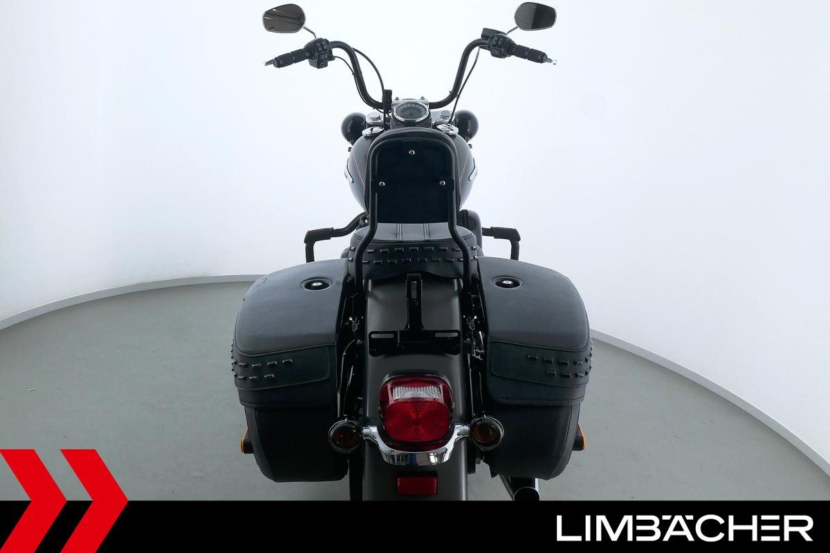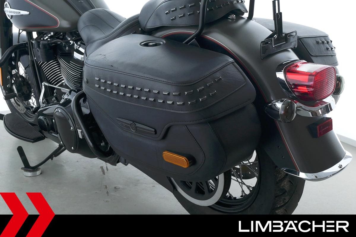 Eine scheckheftgepflegte Harley-Davidson Heritage Softail Classic FLHC aus zweiter Hand in gepflegtem Zustand u.a. mit Jekill&Hyde-Klappenauspuff sowie HD-Lederkoffer-System gleichschließend.