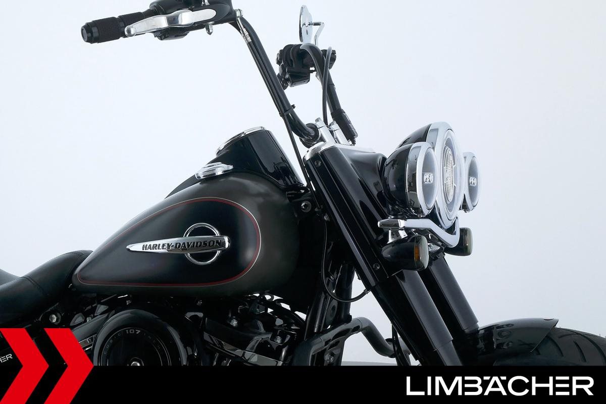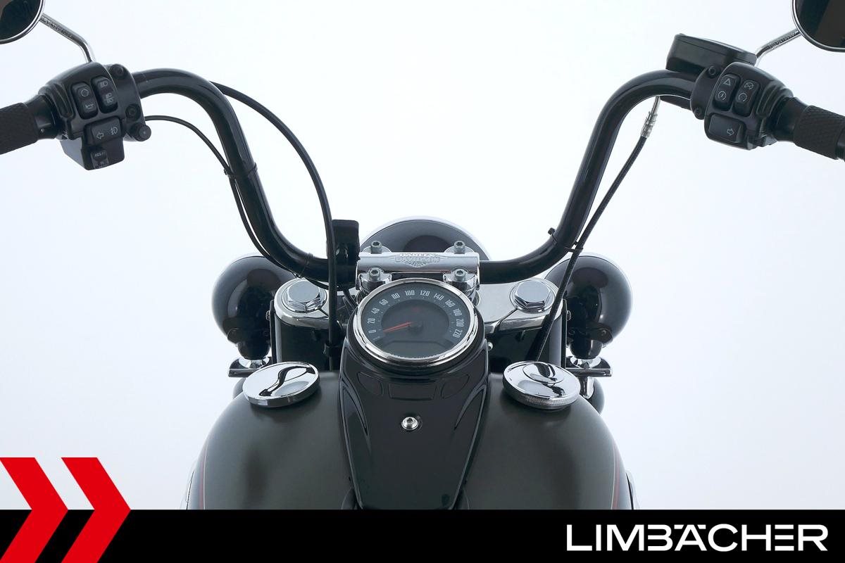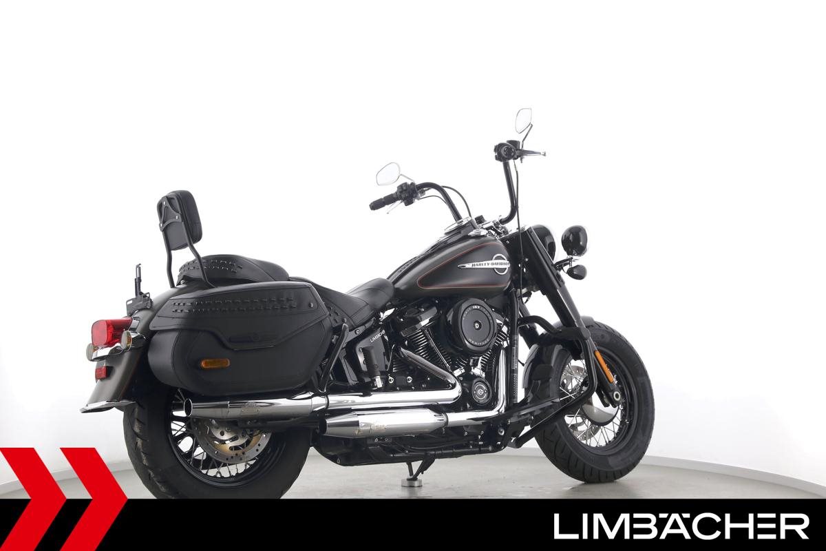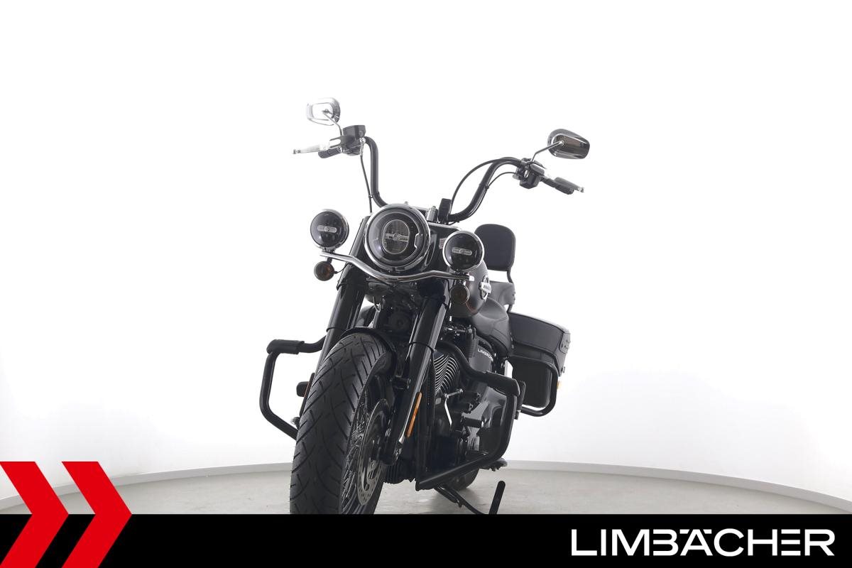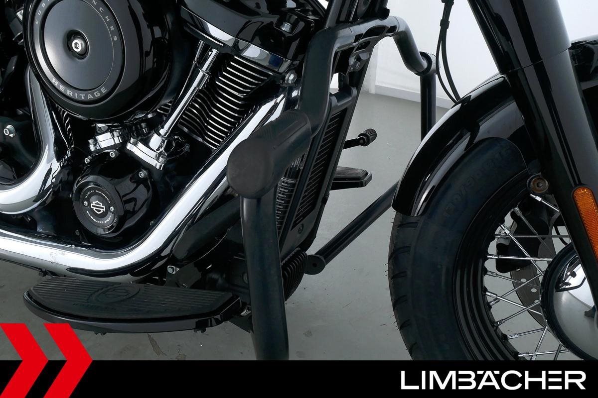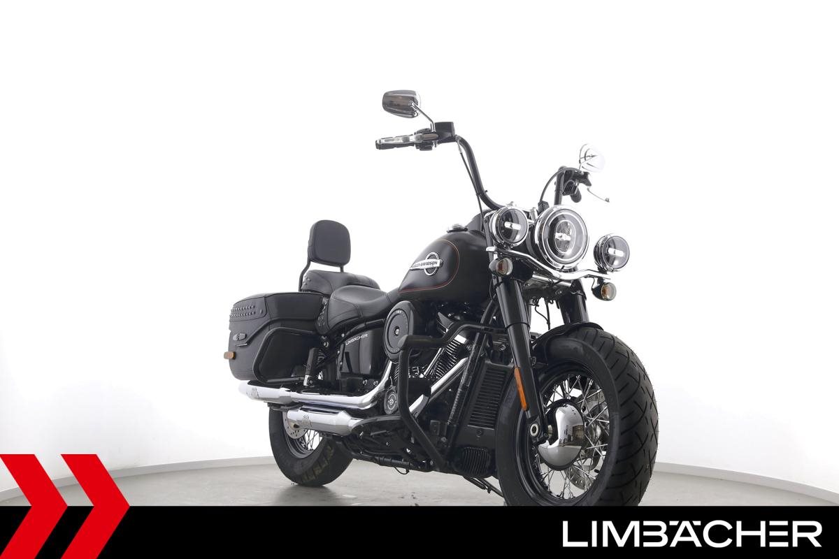 Eine scheckheftgepflegte Harley-Davidson Heritage Softail Classic FLHC aus zweiter Hand in gepflegtem Zustand u.a. mit Jekill&Hyde-Klappenauspuff sowie HD-Lederkoffer-System gleichschließend.