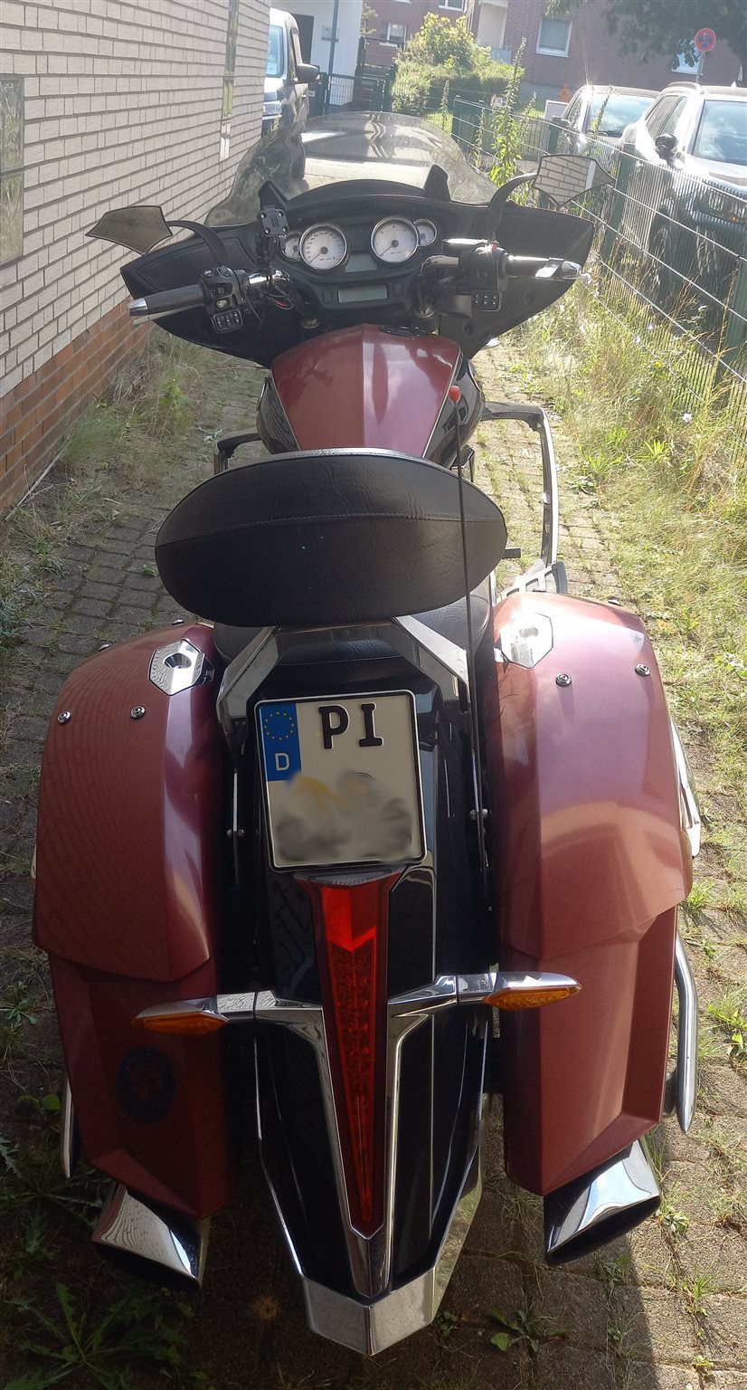 Das Motorrad ist schwarz mit teilweise roter Folierung. Folie weist am rechten Kofferdeckel Stiefelspuren auf, siehe Foto. 2. Hd, HU bis 6/2027. Radio, Tempomat, One-Key-System. Neben dem montierten Windschild ist ein niedrigeres vorhanden. An den Spiegeln blättert die Farbe ab. Probefahrt selbstverständlich nach Absprache möglich. Mobil 017648158291.
