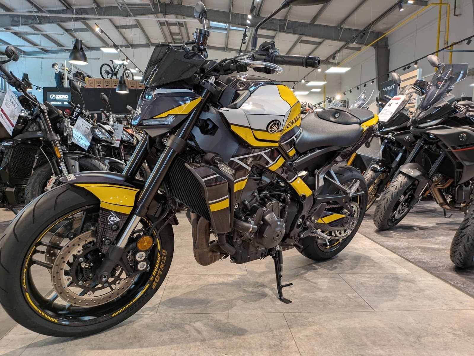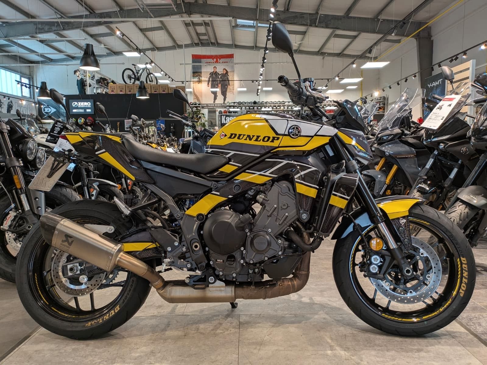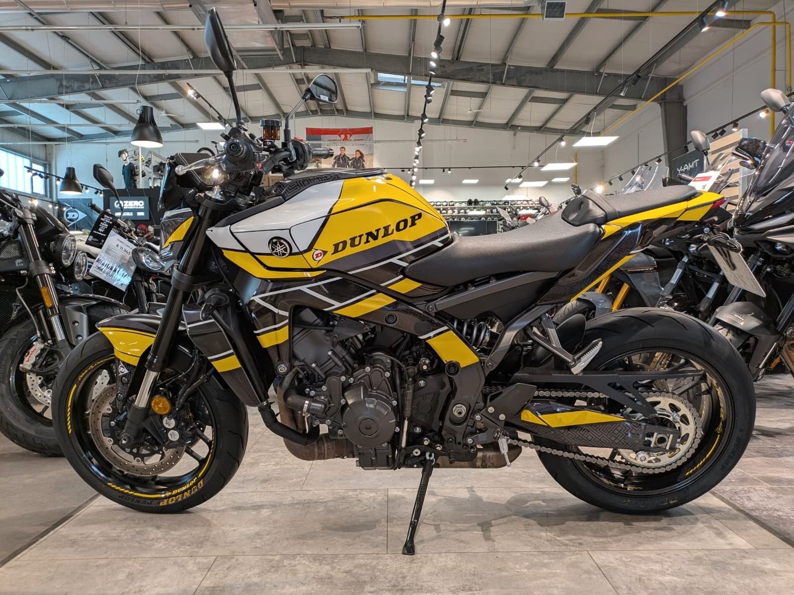 Besonders attraktiv: Die Maschine kommt mit einem kurzen, sportlichen Yamaha-Kennzeichenträger, der dem Heck einen kompakten, cleanen Look verleiht. Dazu eine exklusive und nur 1 x Weltweit von Dunlop erstellten Sonderfolierung "Dunlop Race ltd. Edition" inkl. Dunlop-Reifen-Setup - perfekt für Liebhaber individueller Optik und kompromissloser Performance.