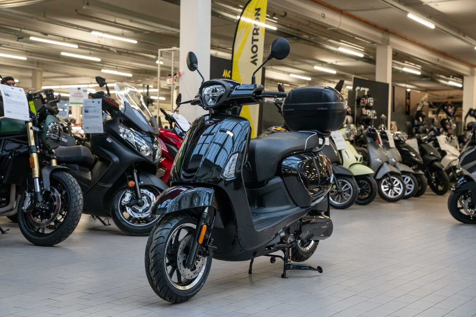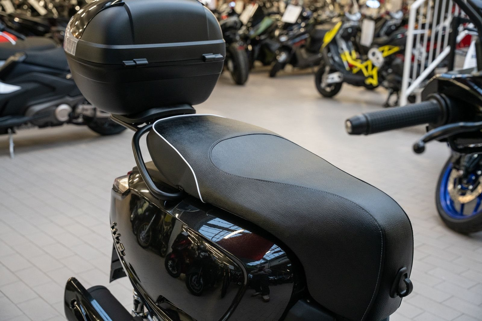 - Design & Beleuchtung: Edles Pearly Black Finish und sparsame, helle Full-LED-Beleuchtung (Scheinwerfer, Blinker, Rücklicht) für eine Top-Optik und Sicherheit bei Nacht.