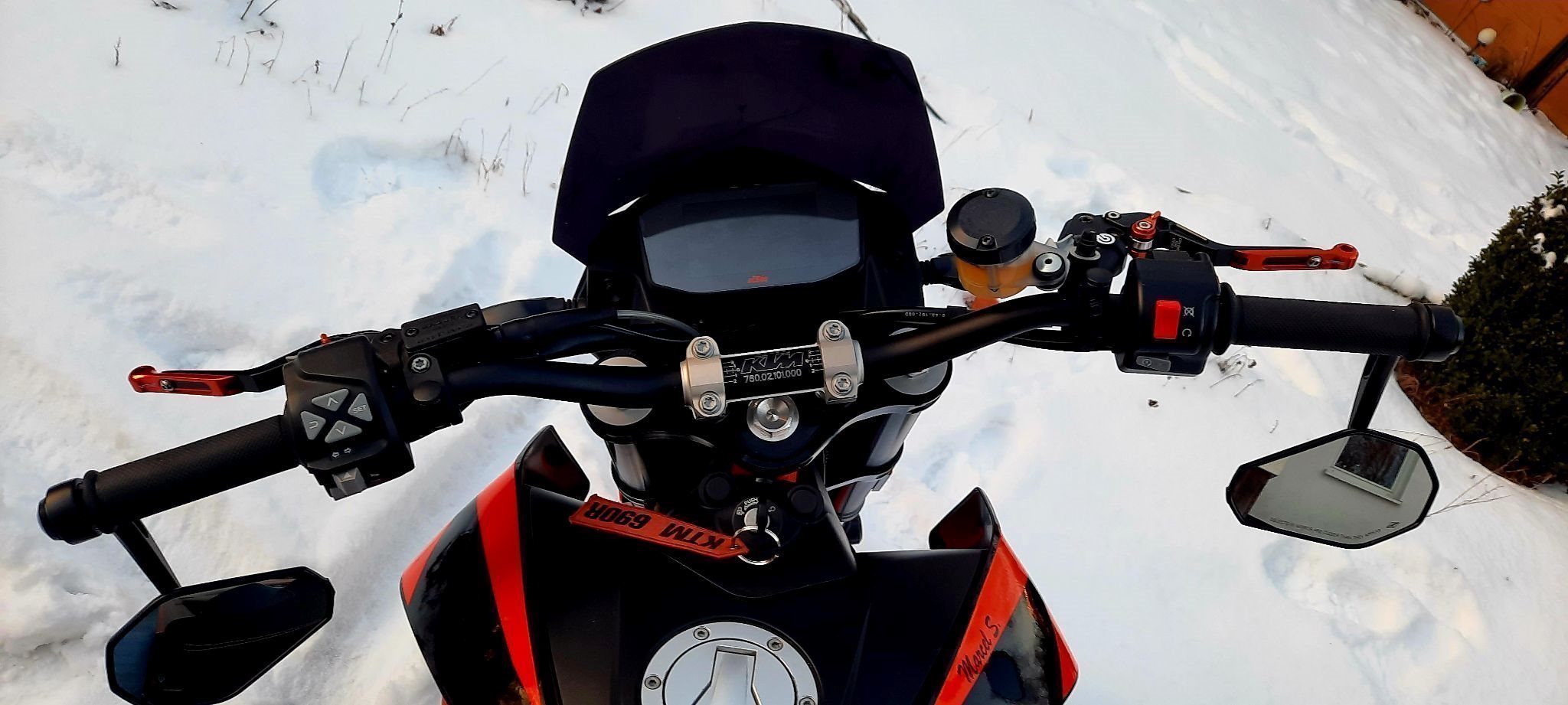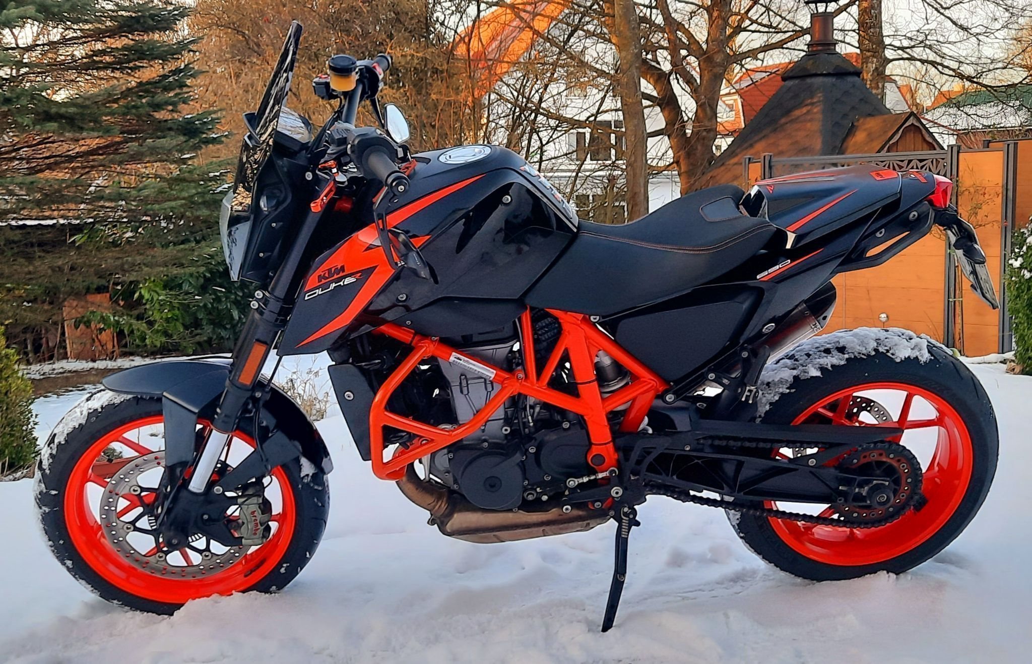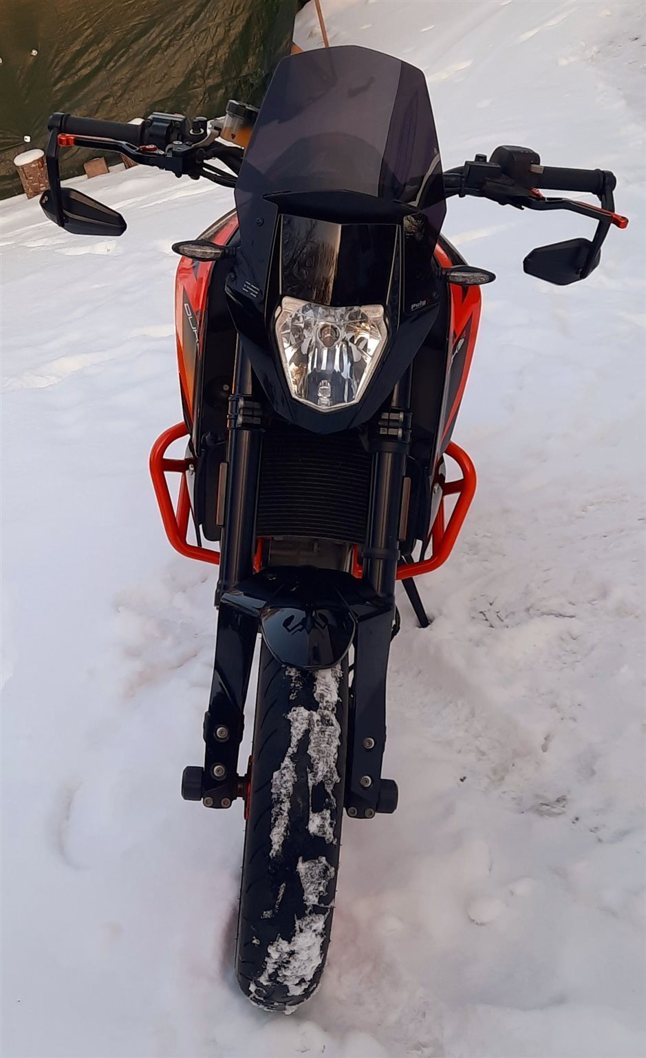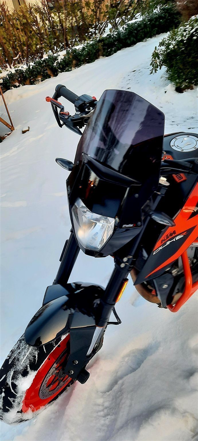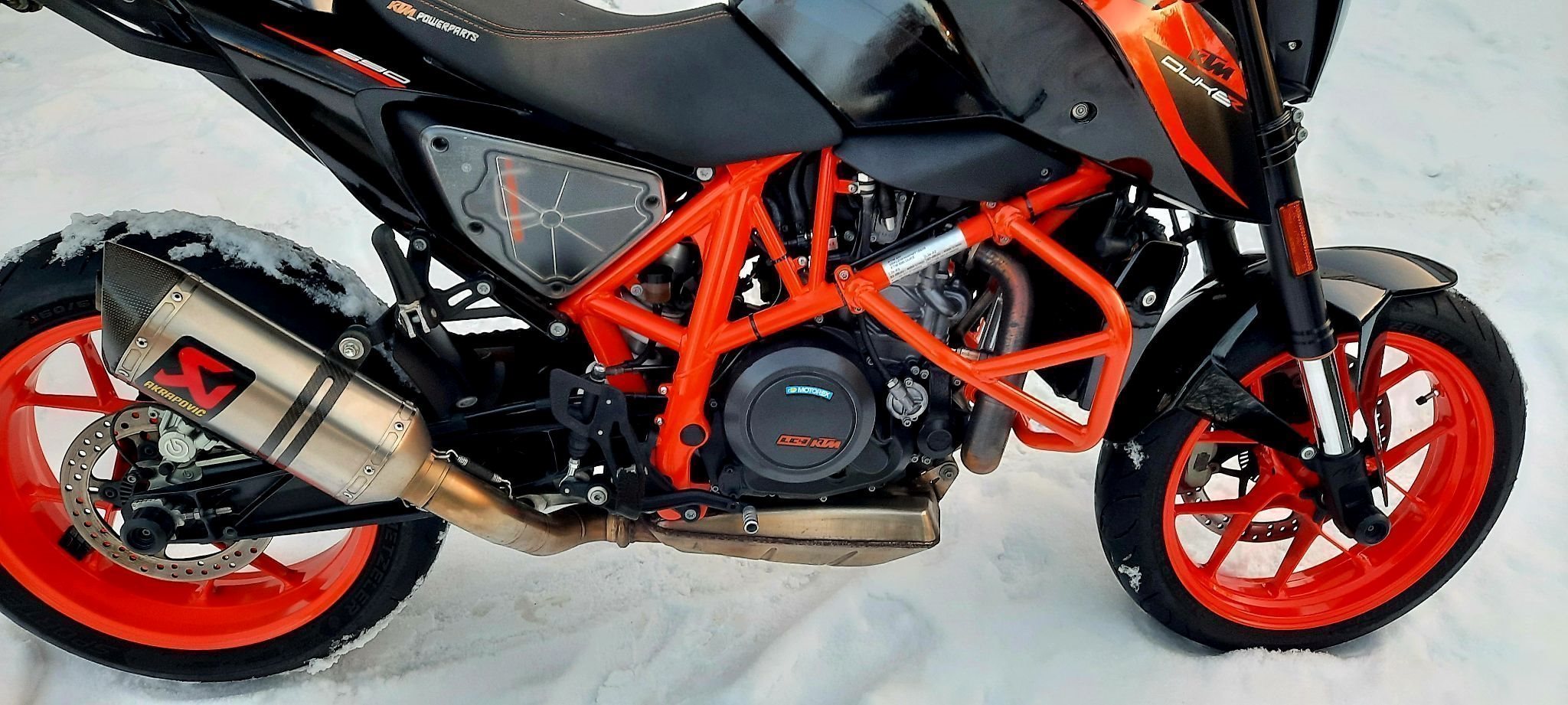 A2 tauglich, Garagenfahrzeug, Sturzbügel, Puig Scheibe, Kupplungs-und Bremshebel orange, Lenker-Enden-Spiegel, Sitzbank-Abdeckung, Powerparts-Sitzbank, Powerparts-Luftfilterabdeckung, Akrapovic Endtopf, kurzer Kennzeichenhalter