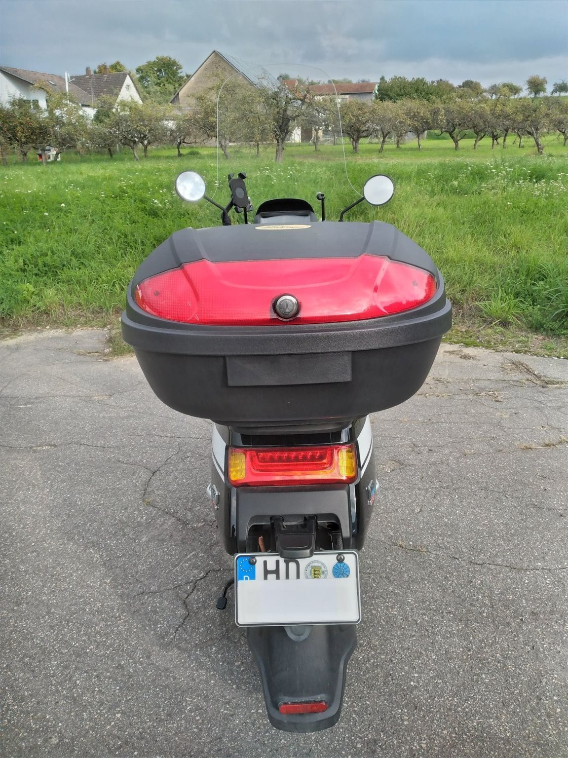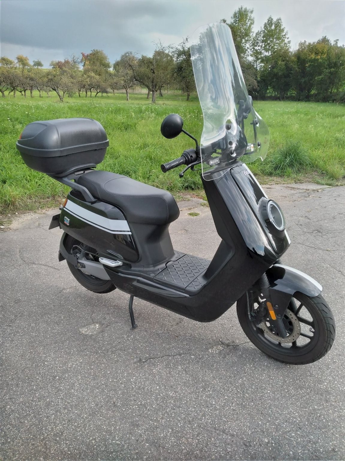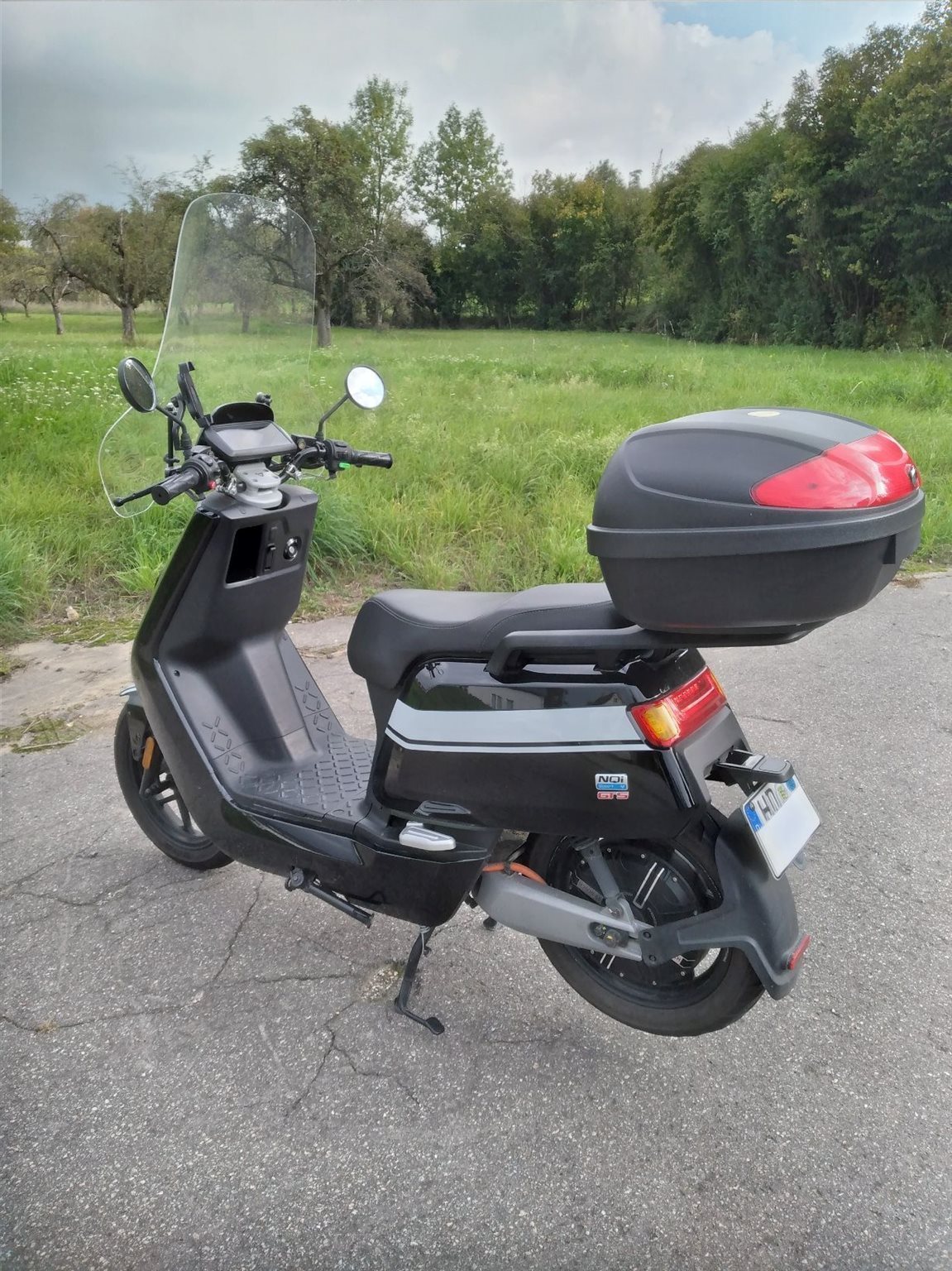 Geschwindigkeit bis 70 Km/h, ich komme im Schnitt ca. 70 Km weit pro Ladung. Durch das große Nummernschild dürfte man sogar auf die Autobahn. Die zwei Batterien können im Fahrzeug oder herausgenommen geladen werden.