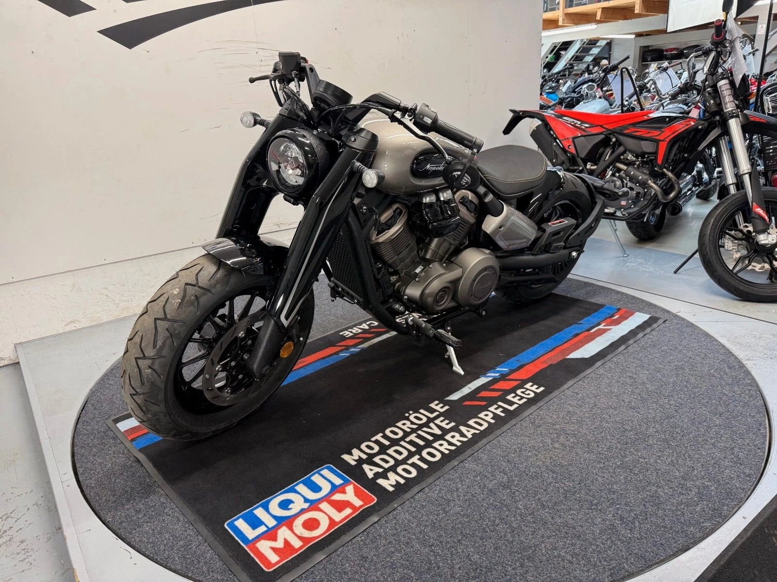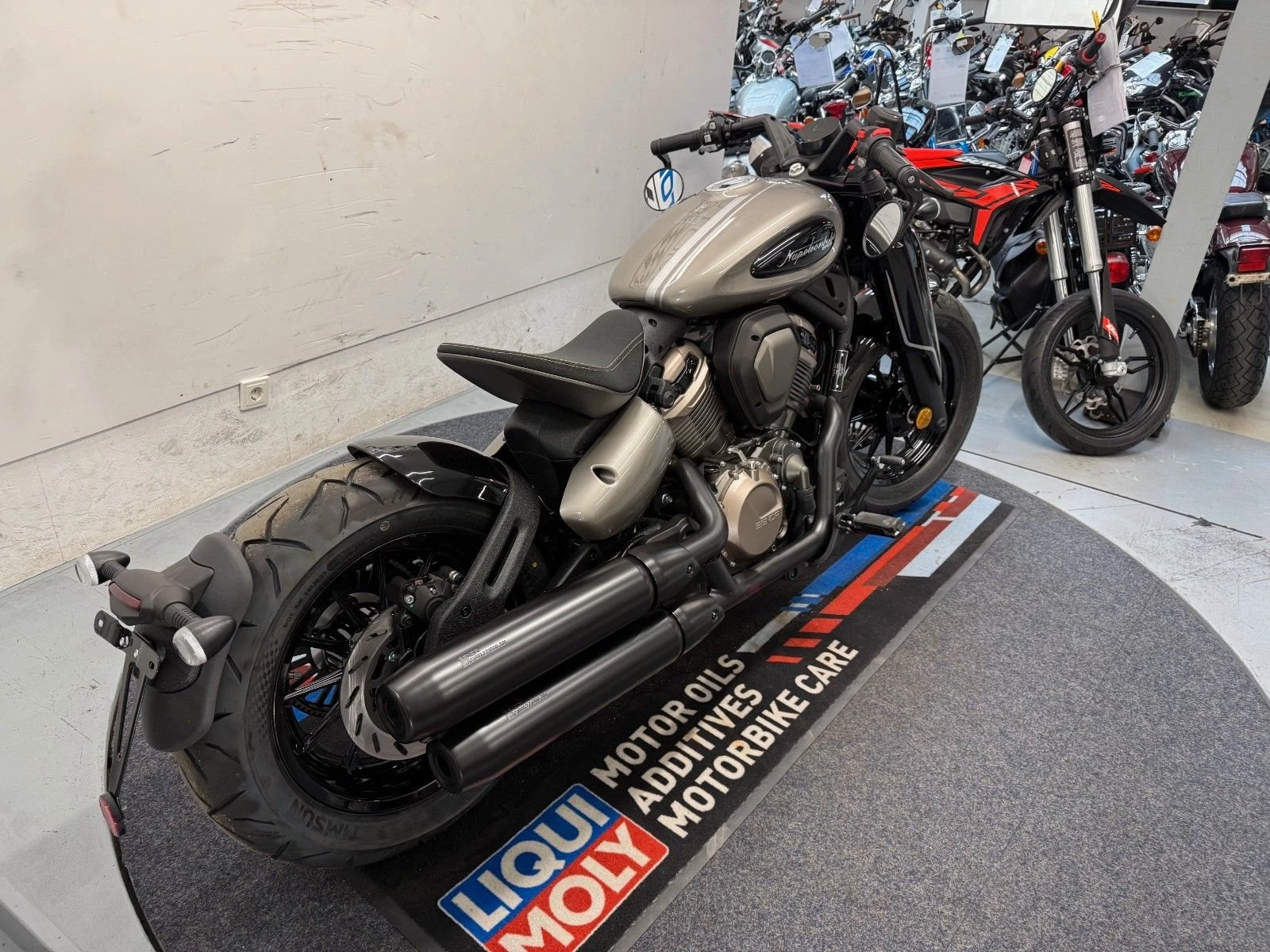 • Markante Optik: zieht viele Blicke auf sich, besonders in der Stadt, breiter 180er-Hinterreifen und stimmige Bobber-Ästhetik