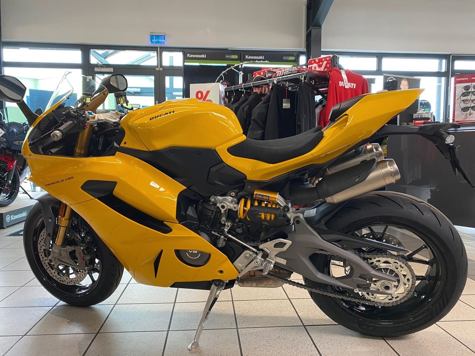 Serienausstattung: Ducati Quick Shift (DQS) Up/Down 2.0, Voll-LED-Scheinwerfer mit Daytime Running Light (DRL), automatische Blinkerrückstellung, Lithium-Ionen-Batterie, Ducati Power Launch (DPL), Pit Limiter, Coming-Home-Funktion, Einsitzer-Konfiguration - Ab 19.190 € - zzgl.Frachtkosten.