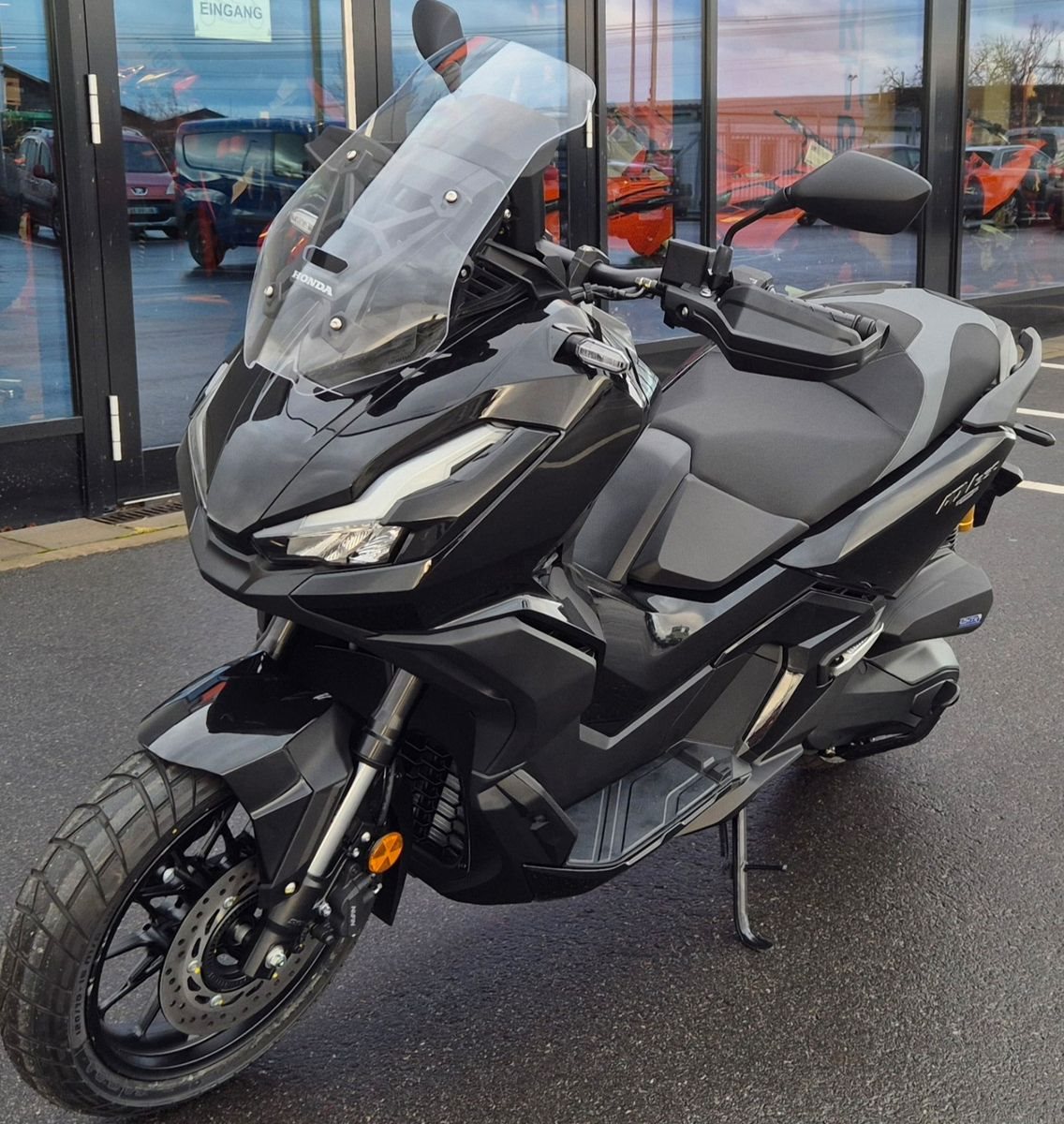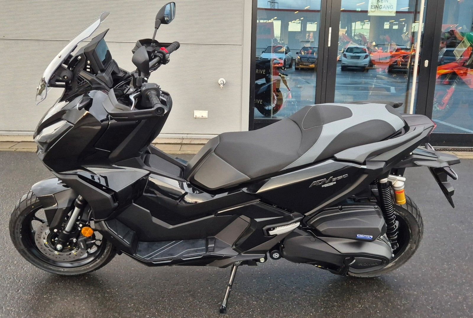 Zuversicht. Fühle es, wenn du den ADV350 Scooter fährst. Sportliche Motorleistung trifft auf ein robustes, leichtgängiges Fahrwerk und eine neue Hinterradaufhängung für mehr Komfort, um das Gelände mit Leichtigkeit zu bewältigen. Mit der automatischen Blinkerabschaltung ist der ADV350 nicht nur sicher, sondern auch funktional. Es geht aber nicht nur um Muskeln. Mit dem außerordentlich übersichtlichen 5-Zoll-TFT-Cockpit hast du während der Fahrt stets alles im Blick und dank Honda RoadSync-Integration jederzeit Zugriff auf Telefonanrufe, Musik und Navigation. Der ADV350. Auf diesen Roller kannst du dich verlassen.