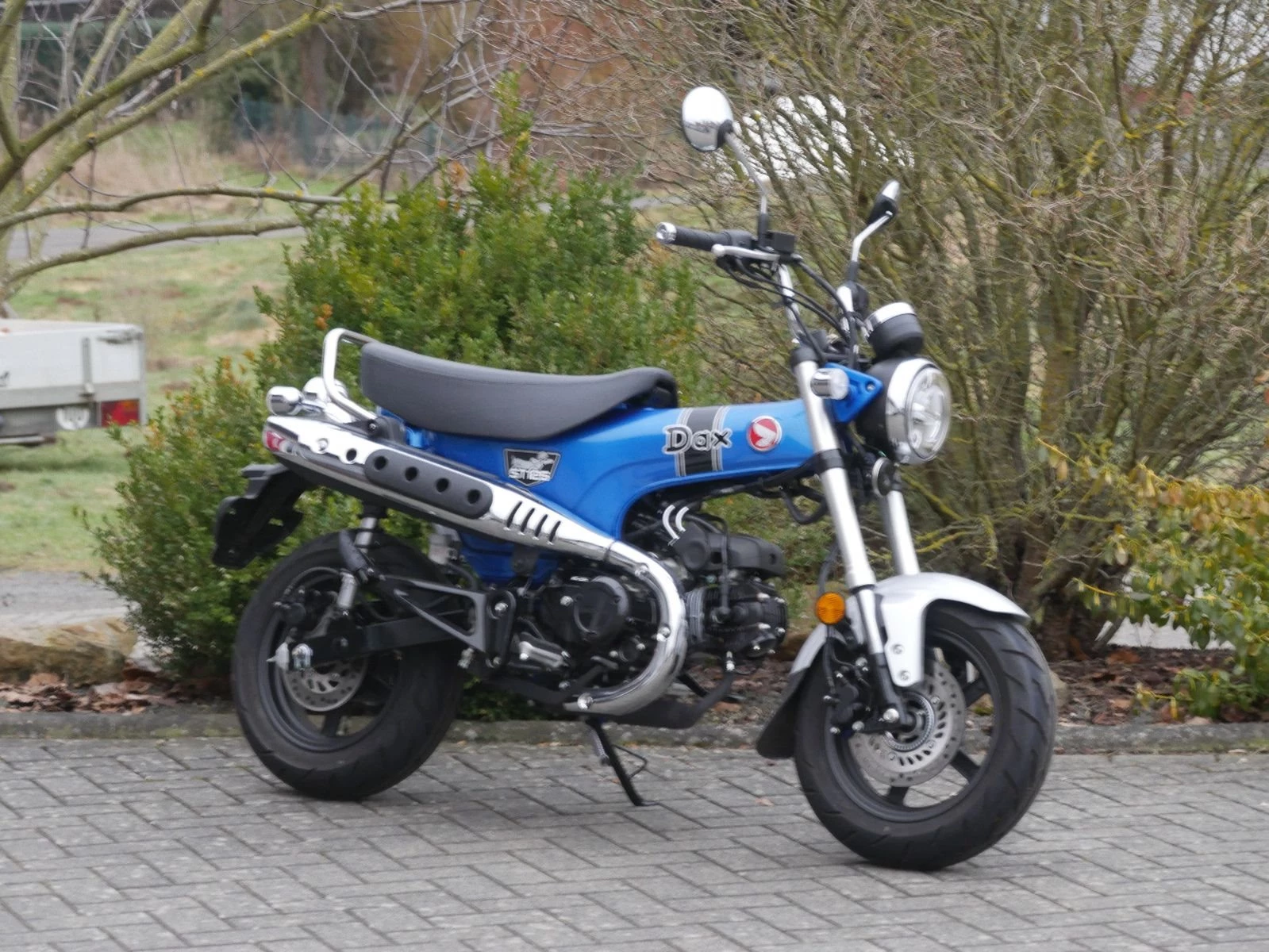 Neuwertige Honda DAX 125 in schickem Blau Metallic mit geringer Laufleistung. Vor der Übergabe bekommt die Honda noch die 1000Km- Inspektion.