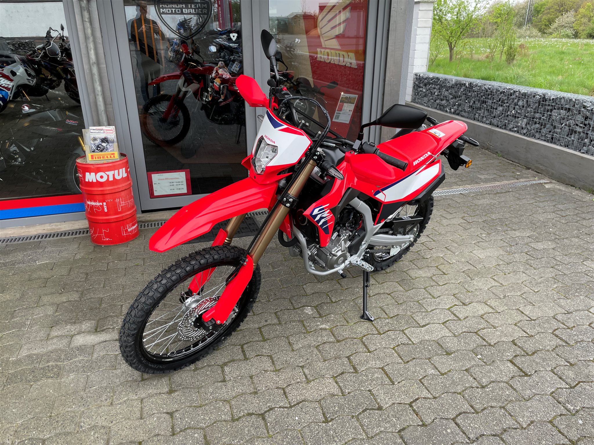 Zum Verkauf steht hier die neue Honda CRF300 L in der Farbe Extrem Red.
