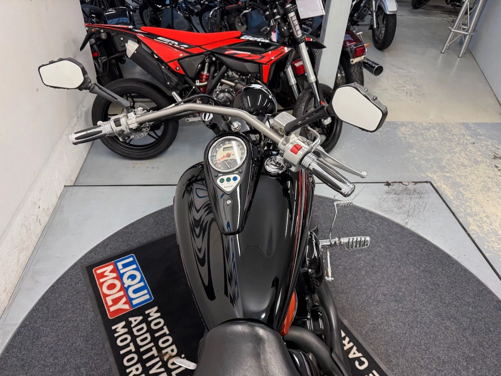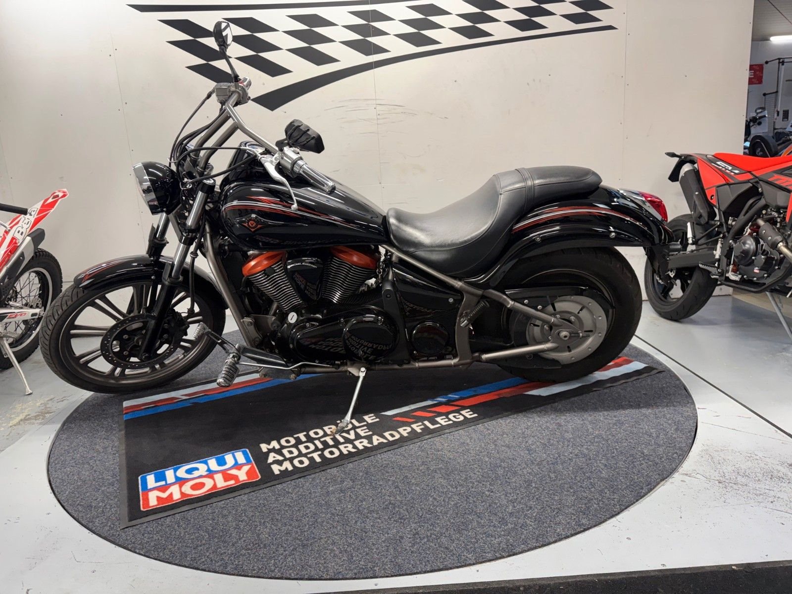 - Die Kawasaki VN 900 ist in einem guten Zustand