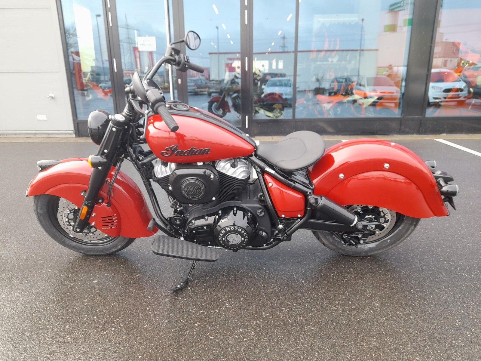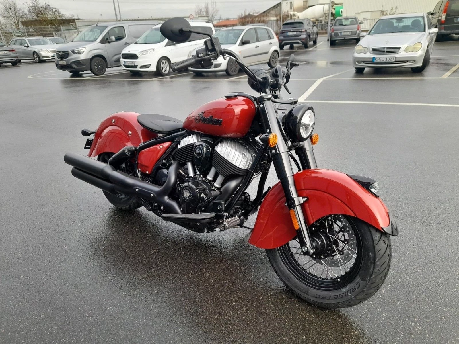 Indian Chief Vintage Im markentypischen Dunkelrot und mit großzügig geschwungenen Schutzblechen erinnert die neue Indian Chief Vintage stilsicher an die ikonische Indian Chief aus den 1940er-Jahren. Also ist auch diese Indian Chief eine im klassischen Sinne schwere Maschine. Low-Rider-Sitzhöhe: unter 70 Zentimeter (686 mm).Luftgekühlter V2-MotorNach wie vor luftgekühlt ist der große V2-Motor der neuen Indian Chief Vintage. Prinzipiell ist das also ein standesgemäßer Antrieb wie seit vielen Jahrzehnten, Kühlrippen und Stoßstangen-Ventiltrieb sind prächtig inszeniert. Stolze 1.890 Kubik Hubraum hat der markante Big Twin namens Thunderstroke 116.