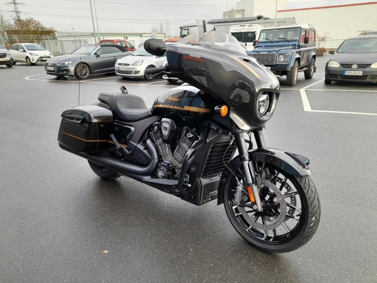 ERSTKLASSIGE AUSSTATTUNG Die Chieftain ist serienmäßig mit LED-Beleuchtung, schlüsselloser Zündung, Tempomat, elektrisch verschließbaren Seitenkoffern, ABS und Reifendruckkontrolle ausgestattet. 7-Zoll-Touchscreen mit RIDE COMMAND inkl. Apple CarPlay-Integration; elektrische Windschutzscheibe; Highway Bars; Vinyl-Rogue-Sitz; Reifendrucküberwachung; fernbedienbare Hard Saddlebags; wählbare Fahrmodi; Deaktivierung des hinteren Zylinders; ABS; Tempomat; schlüssellose Zündung; 100-Watt-Audiosystem mit AM/FM, Bluetooth, USB, Smartphone-kompatiblem Eingang; 12-V-Ladeanschluss