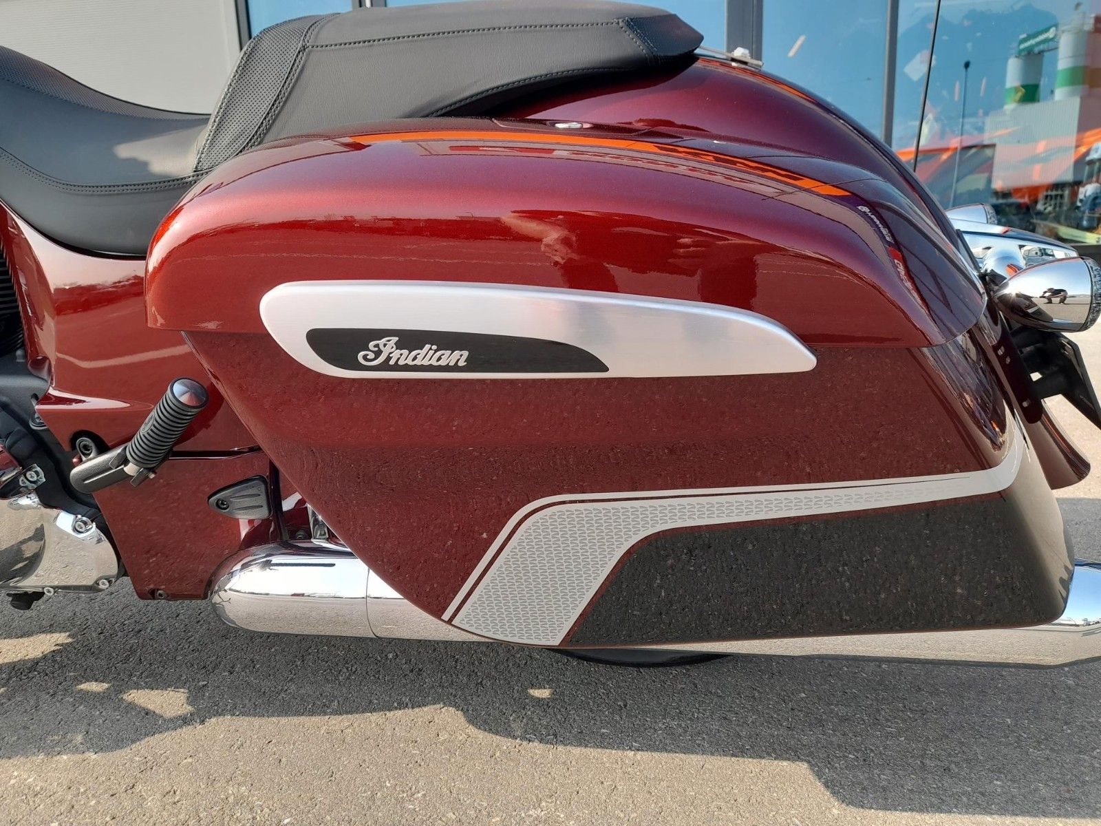 ERSTKLASSIGE AUSSTATTUNG Die Chieftain Limited ist serienmäßig mit LED-Beleuchtung, schlüsselloser Zündung, Tempomat, elektrisch verschließbaren Seitenkoffern, ABS und Reifendruckkontrolle ausgestattet. 7-Zoll-Touchscreen mit RIDE COMMAND inkl. Apple CarPlay-Integration; elektrische Windschutzscheibe; Highway Bars; Vinyl-Rogue-Sitz; Reifendrucküberwachung; fernbedienbare Hard Saddlebags; wählbare Fahrmodi; Deaktivierung des hinteren Zylinders; ABS; Tempomat; schlüssellose Zündung; 100-Watt-Audiosystem mit AM/FM, Bluetooth, USB, Smartphone-kompatiblem Eingang; 12-V-Ladeanschluss