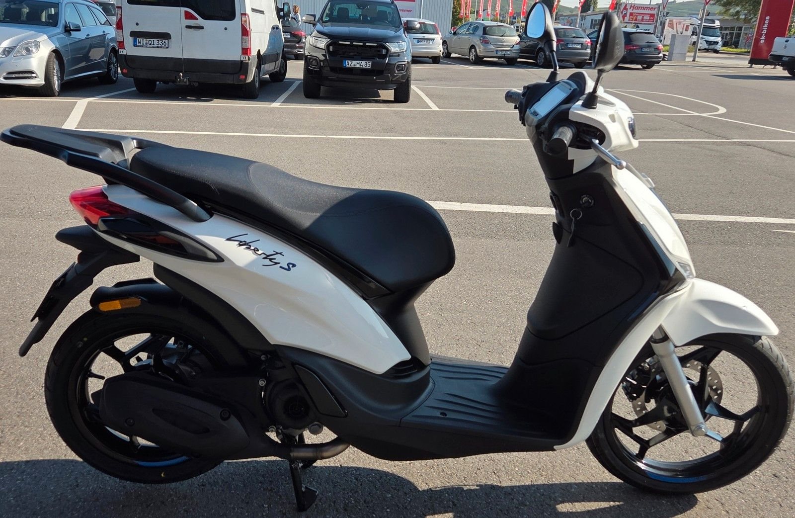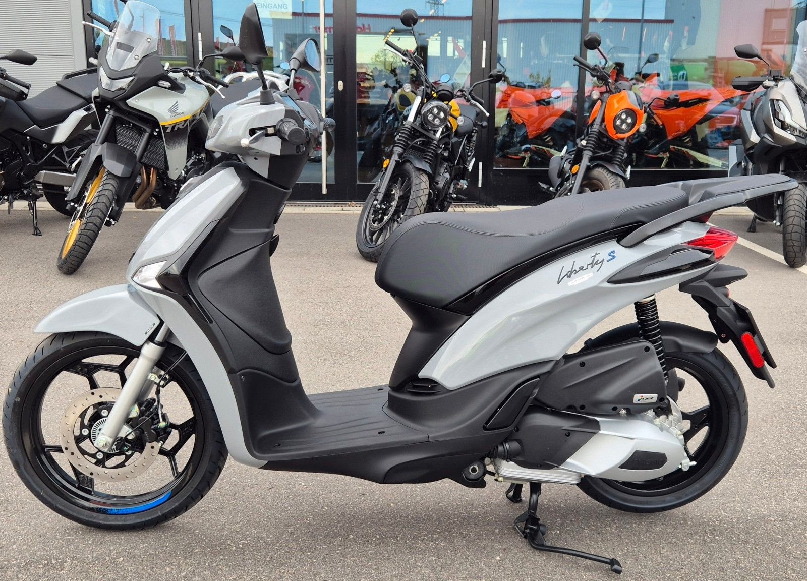 Dass der Liberty 50 S ein richtig erwachsener Großradroller ist, setzten seine Aluminium-Leichtmetallräder mit ihrem Diamond Cut - vorne 16-Zoll, hinten 14-Zoll - gekonnt in Szene. Radgrößen, die ein Höchstmaß an Fahrstabilität und für bestes Handling stehen.