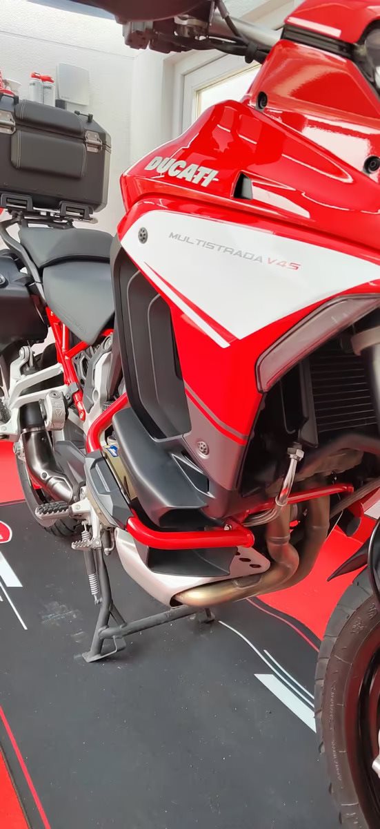 Verkaufe top gepflegte Ducati mit viel Zubehör wie SHAD Alu Topcase TR48 mit Backrest und Alu Montageplatte. Original Ducati Innentaschen für Koffer. Brems und Kupplungshebel Alu rot längenverstellbar. Wunderlich Motorschutz Bügel GUARD. Original Ducati Hand Protektoren Alu. 3 teilige WRS Windschutzscheibe Touring und vulturbike Design. Dazu eine 36er Nuss fürs Kettenspannen und ein Messgerät zum Spannung kontrollieren. Alle Originalteile werden selbstverständlich mitgeliefert. Alles in neuwertigem Zustand. Das Bike hatte seine eigene Garage. Kein Sturz oder umfaller