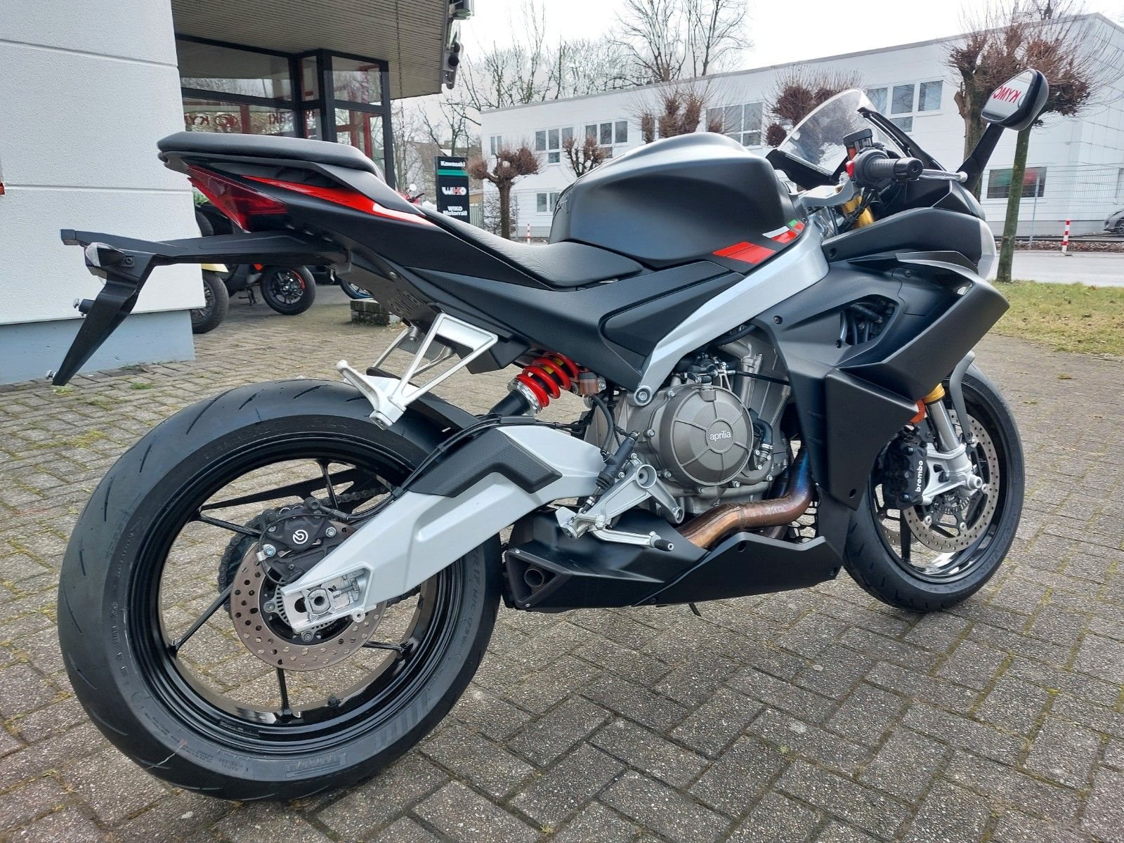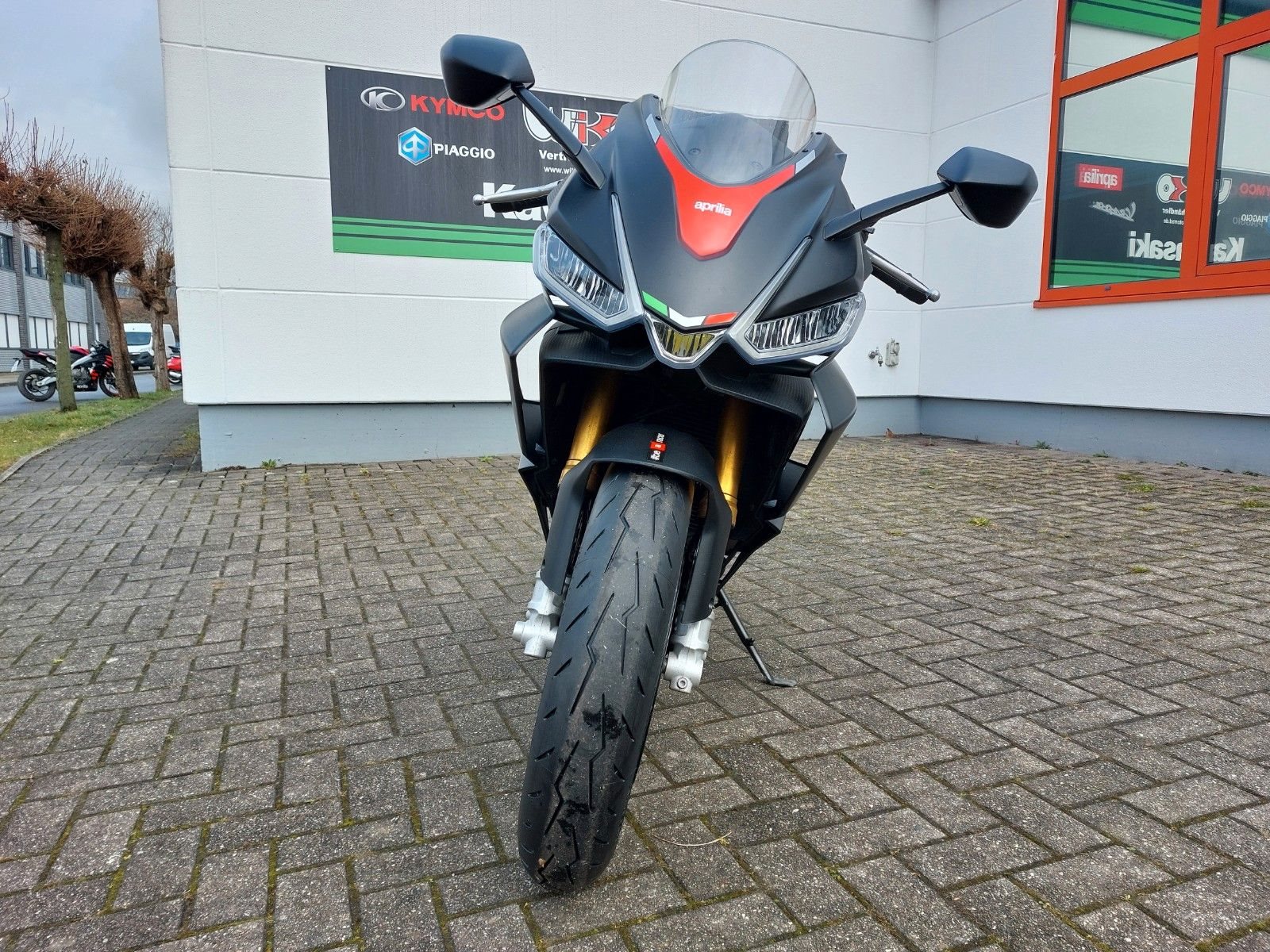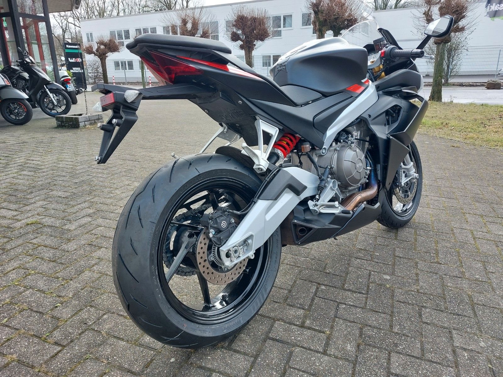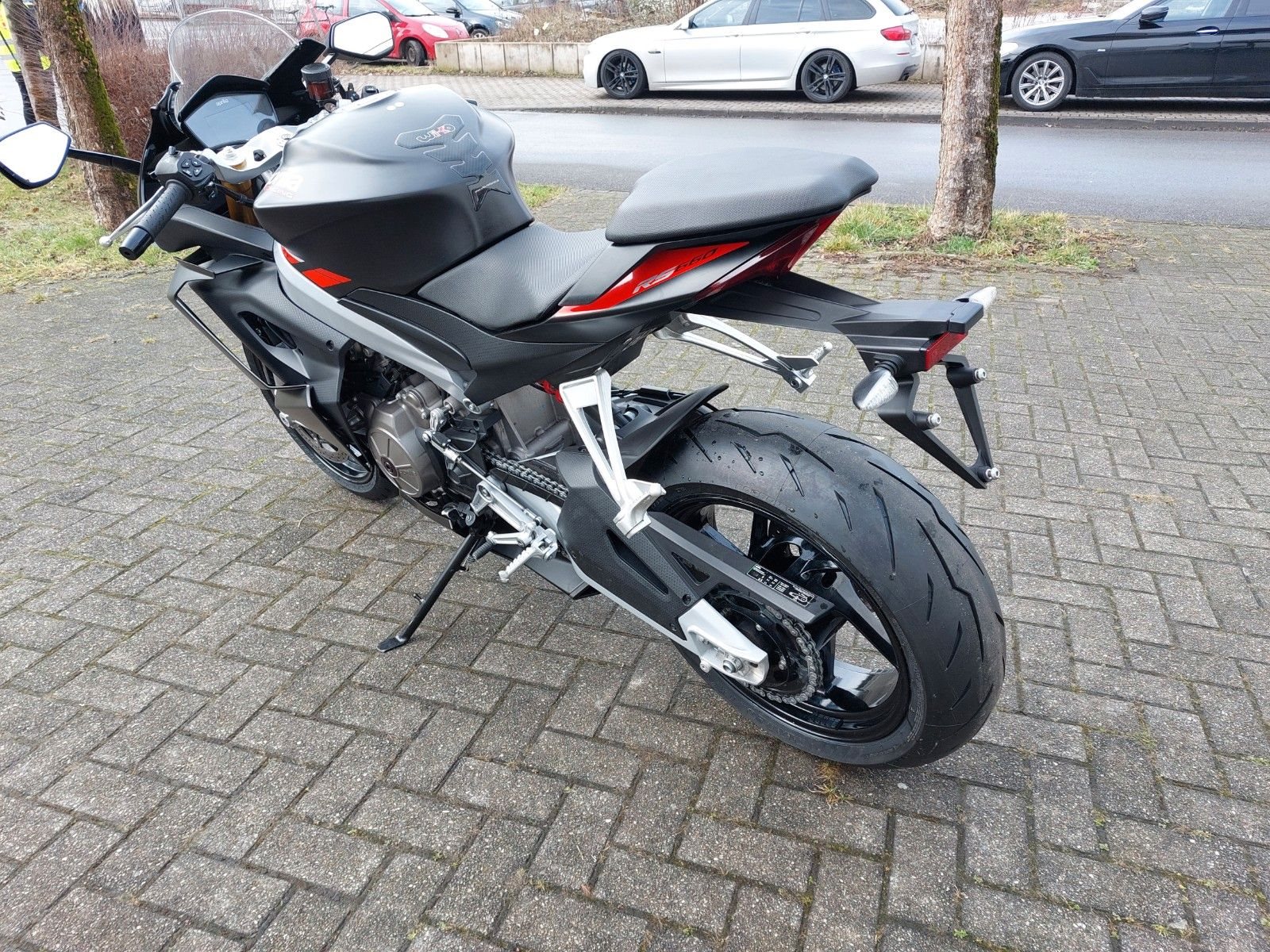 RS 660 E5 Vorführfahrzeug mit 12 Monaten Gewährleistung vom Aprilia Vertragshändler Scheckheftgepflegt frische Inspektion durchgeführt neue Reifen montiert* Bremsen: Vorne Doppelscheibe 320 mm (Brembo), hinten Scheibe 220 mm, Kurven-ABS.