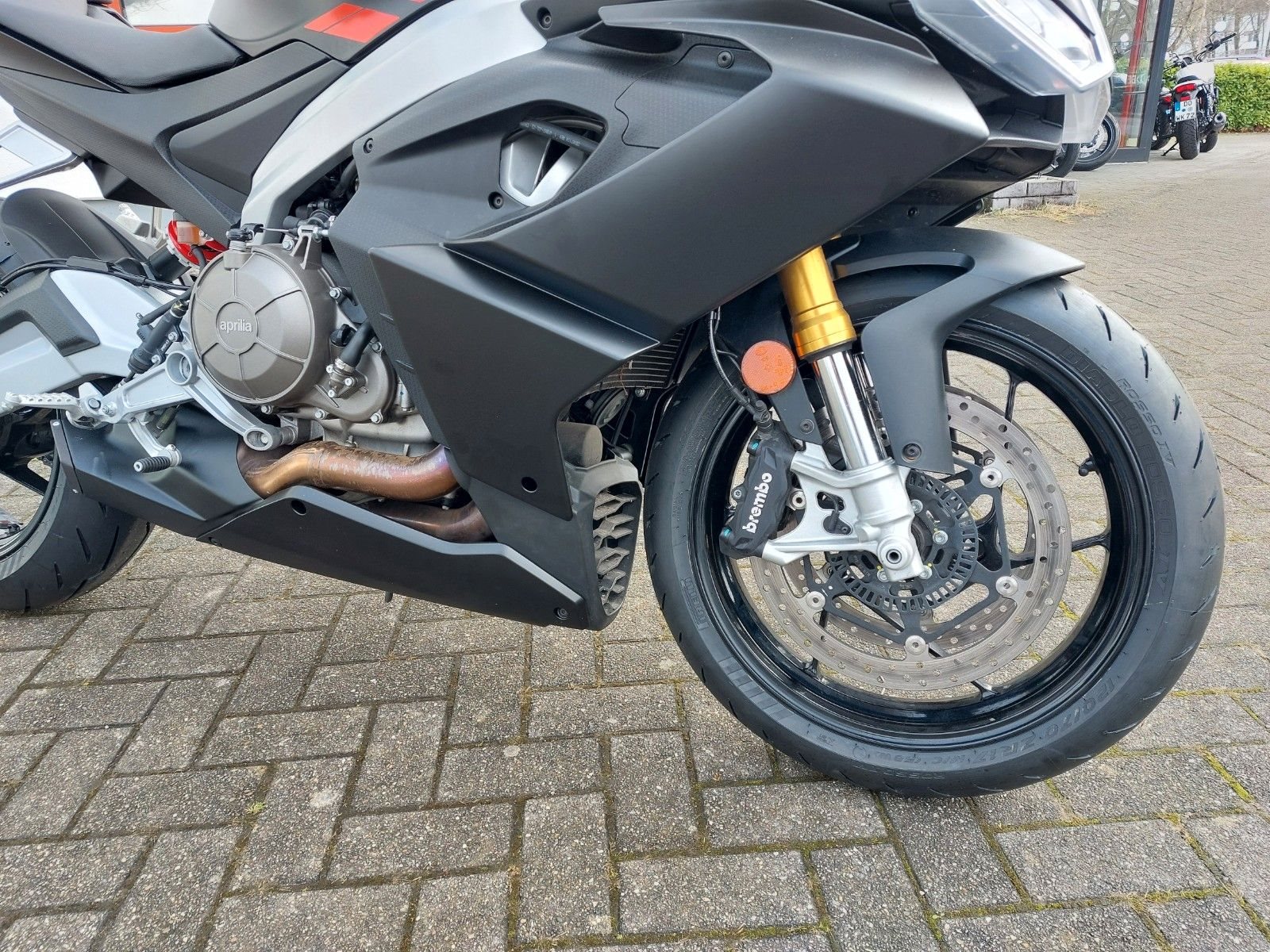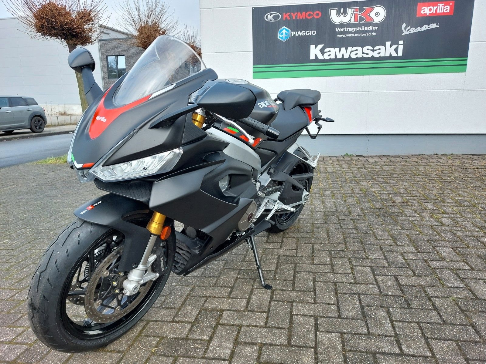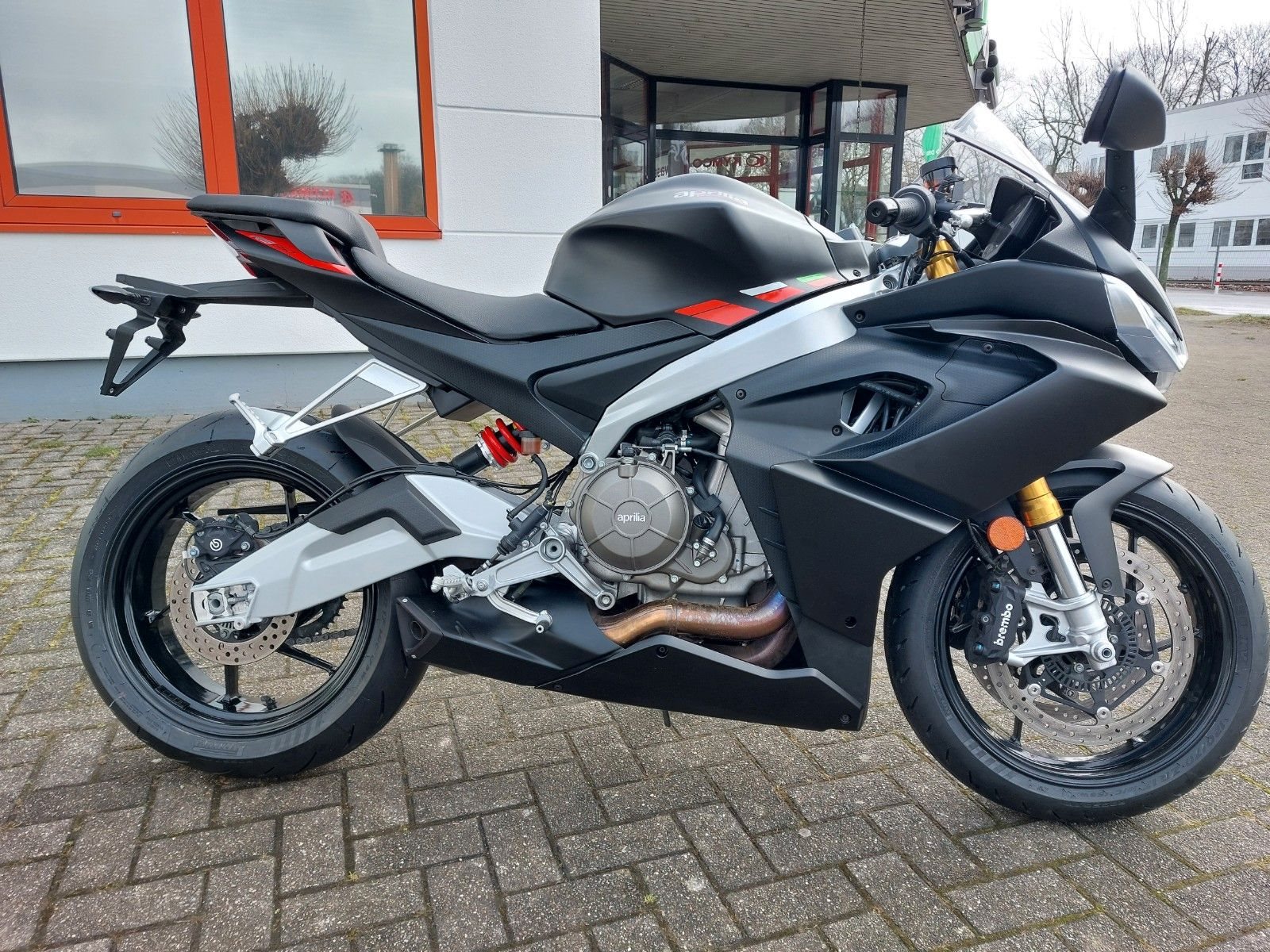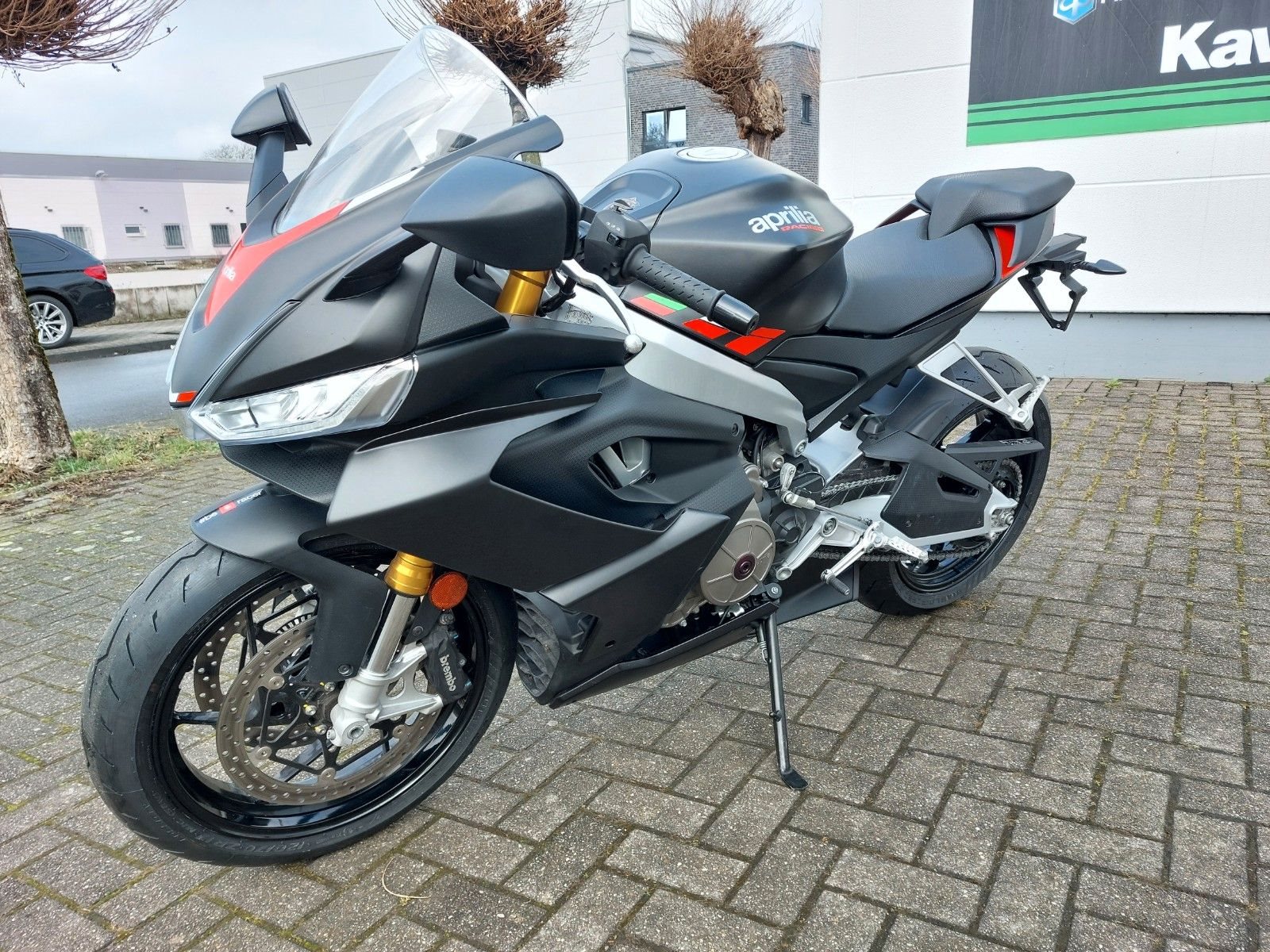 RS 660 E5 Vorführfahrzeug mit 12 Monaten Gewährleistung vom Aprilia Vertragshändler Scheckheftgepflegt frische Inspektion durchgeführt neue Reifen montiert* Bremsen: Vorne Doppelscheibe 320 mm (Brembo), hinten Scheibe 220 mm, Kurven-ABS.