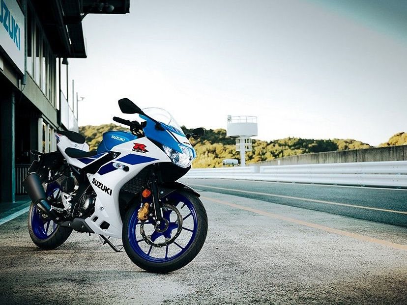 Typisch GSX-R: Die Rennstrecken-Wurzeln des flüssigkeitsgekühlten DOHC-Einzylinders sorgen bei jeder Drehzahl für satten Fahrspaß. Seine ausgeglichen kraftvolle Leistungsabgabe treibt die GSX-R125 zu beeindruckenden Beschleunigungen an.Sportliche Sitzposition, schlankes Design und scharf geschnittene Linien mit aerodynamisch optimierter Racing-Verkleidung - im Windkanal geformt und im ausgefeilten Spritzgussverfahren gefertigt.