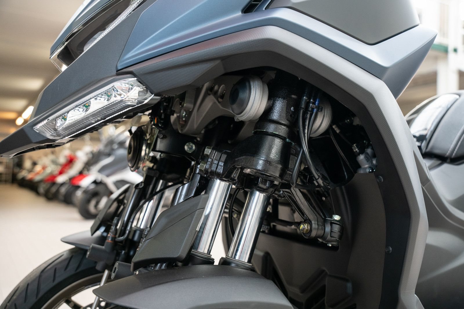 • Verbesserte Stabilität: Zusätzliche Dämpfer vorne stabilisieren das Fahrzeug weiter, insbesondere bei aktivierter Kippsperre an Ampeln oder beim Abstellen.