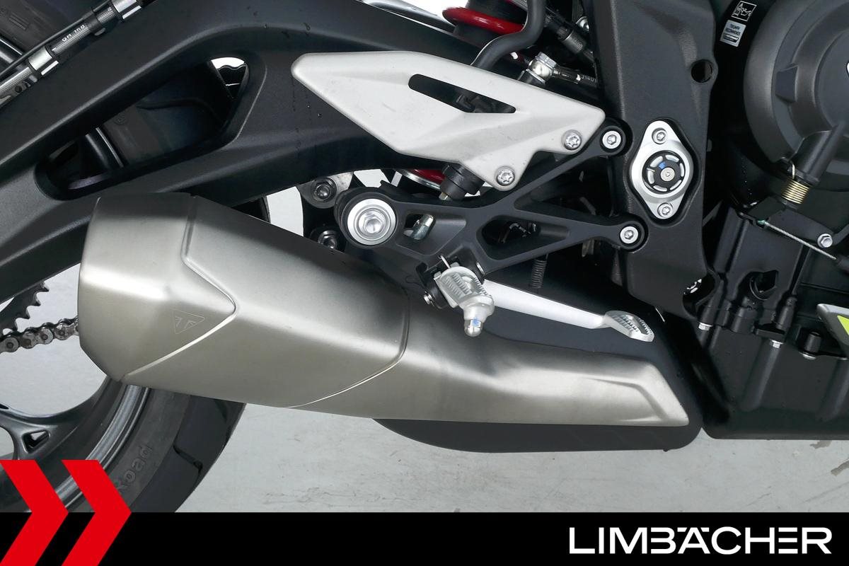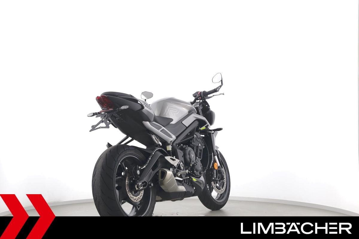 Eine Triumph Street Triple 765 R aus zweiter Hand in Topzustand u.a. mit kurzem Kennzeichenhalter und Schaltassistent.