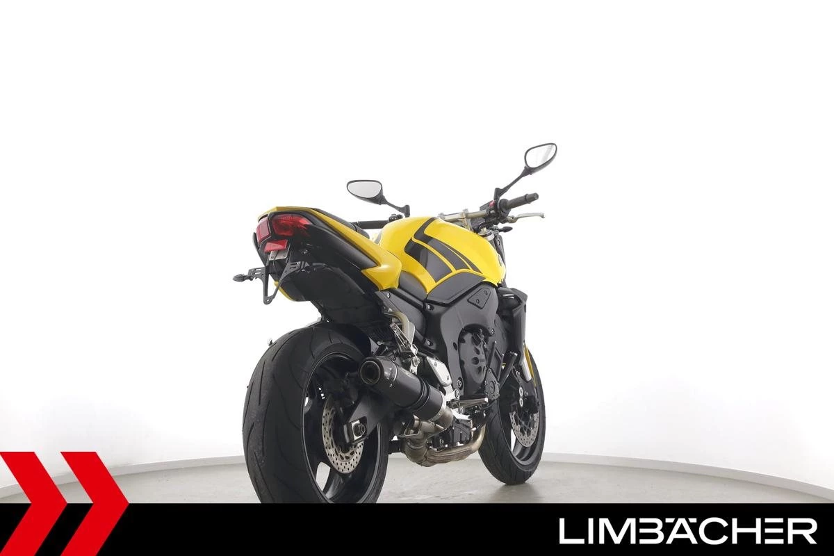 Eine Yamaha FZ1 N in gepflegtem Zustand u.a. mit Hashiru-Endschalldämpfer und kurzem Kennzeichenhalter.