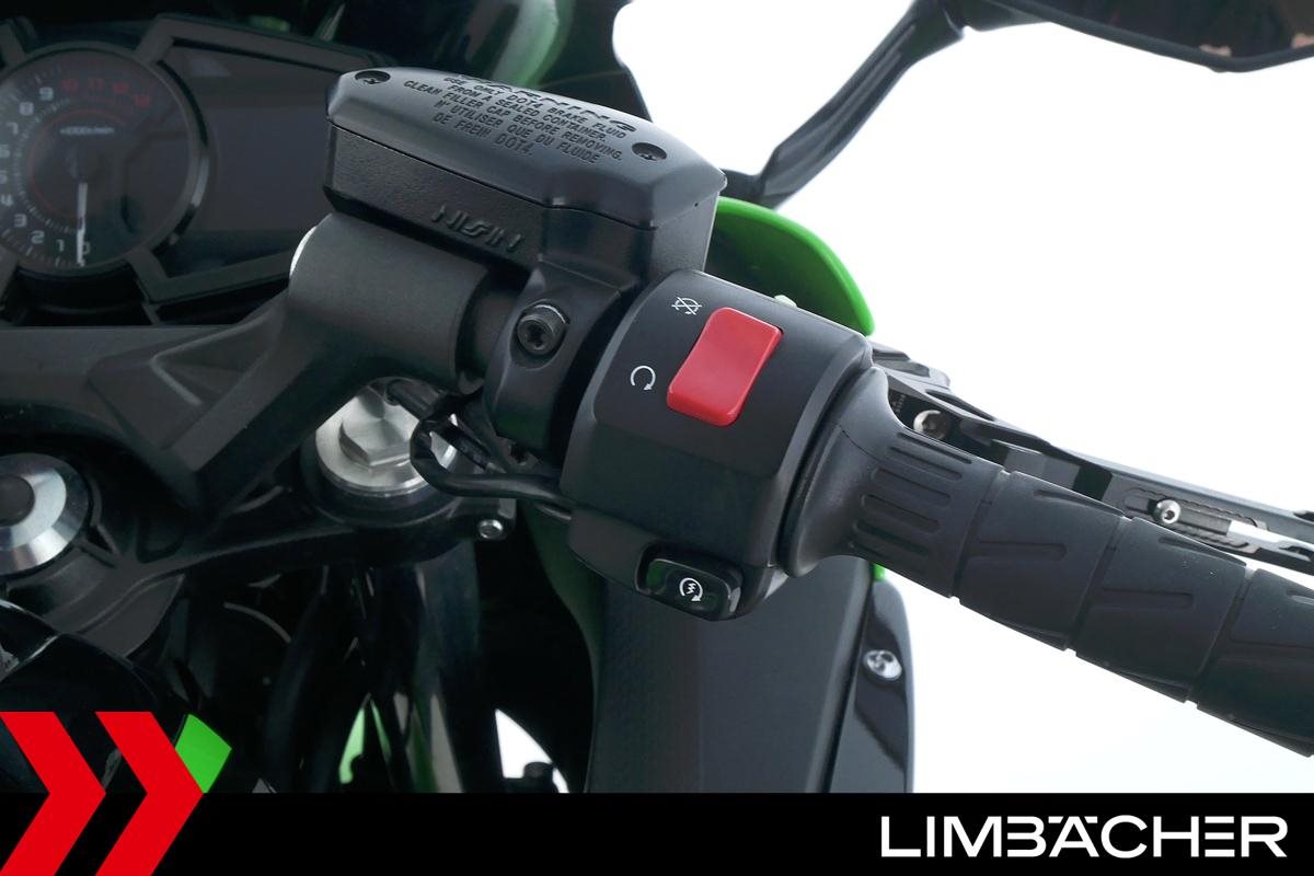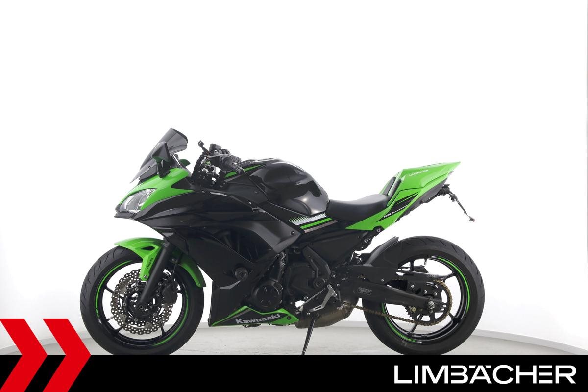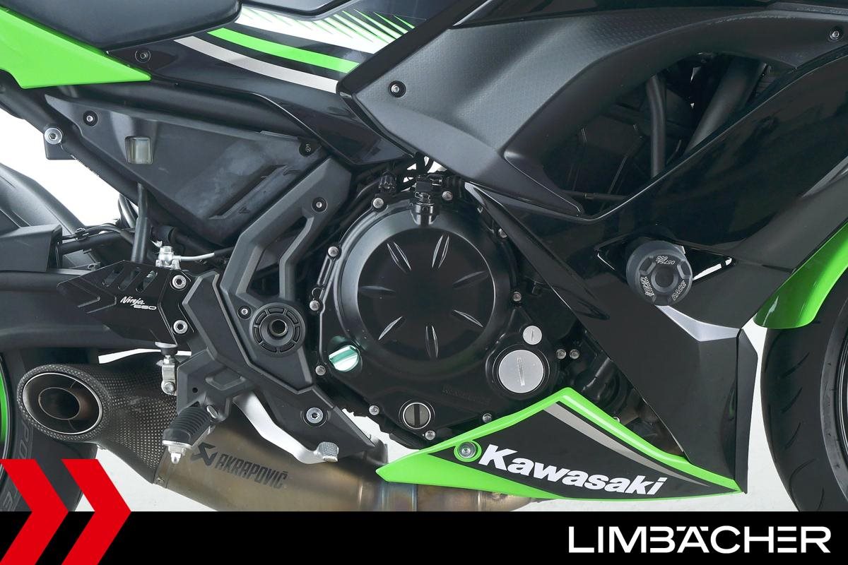 Eine scheckheftgepflegte Kawasaki Ninja 650 in gepflegtem Zustand u.a. mit Akrapovic-Endschalldämpfer sowie kurzem Kennzeichenhalter.