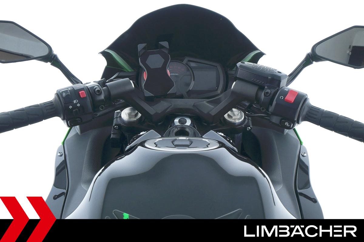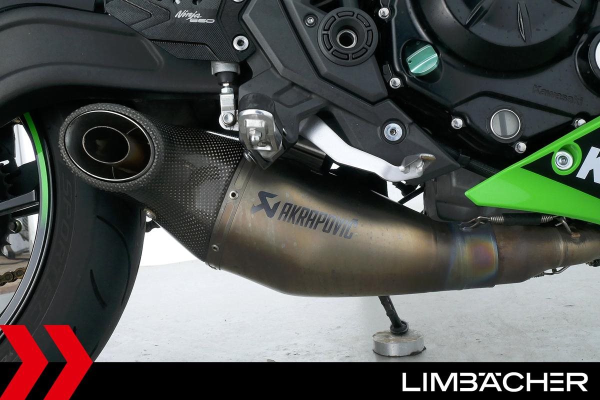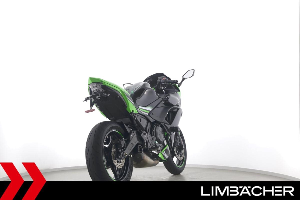 Eine scheckheftgepflegte Kawasaki Ninja 650 in gepflegtem Zustand u.a. mit Akrapovic-Endschalldämpfer sowie kurzem Kennzeichenhalter.