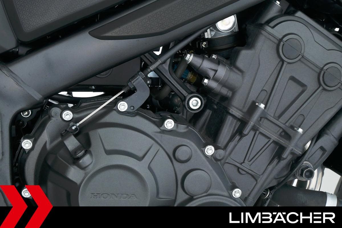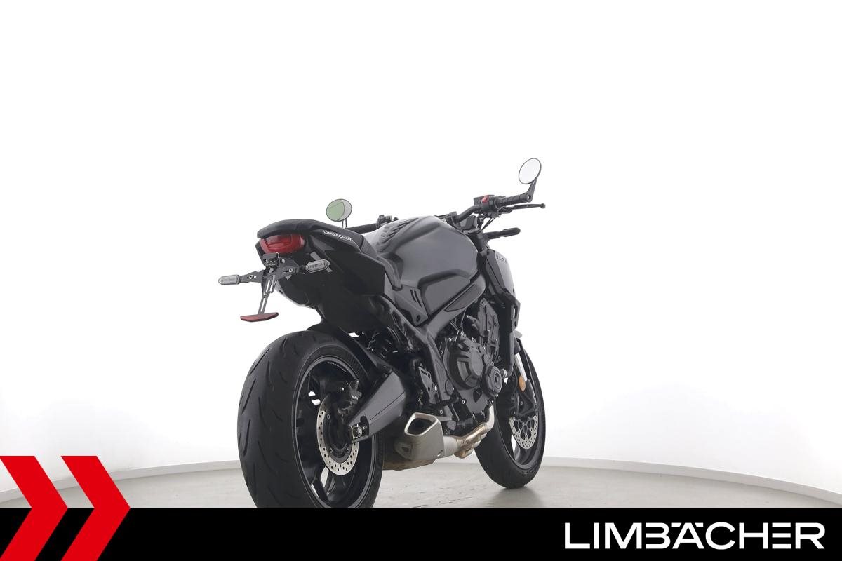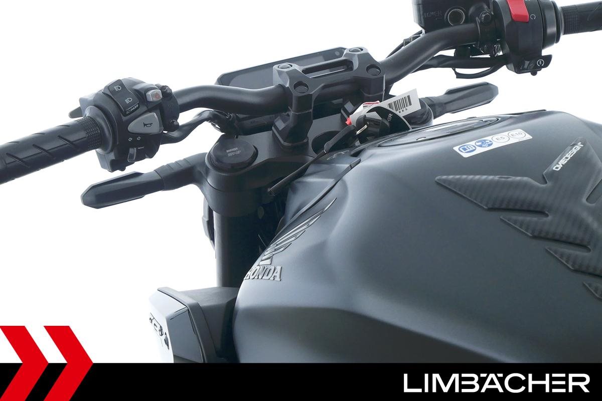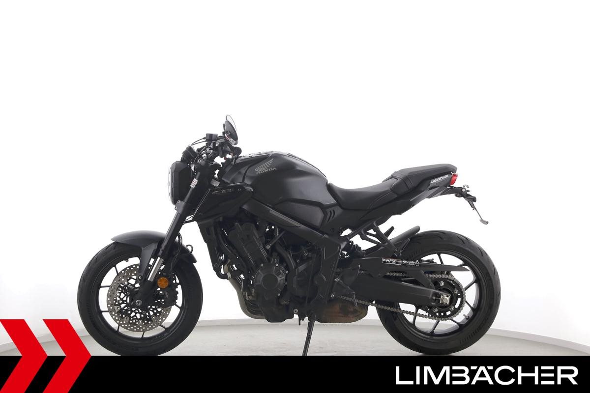 Eine scheckheftgepflegte Honda CB 650 R aus erster Hand in gepflegtem Zustand u.a. mit kurzem Kennzeichenhalter und LSL-Lenkerendenspiegeln.