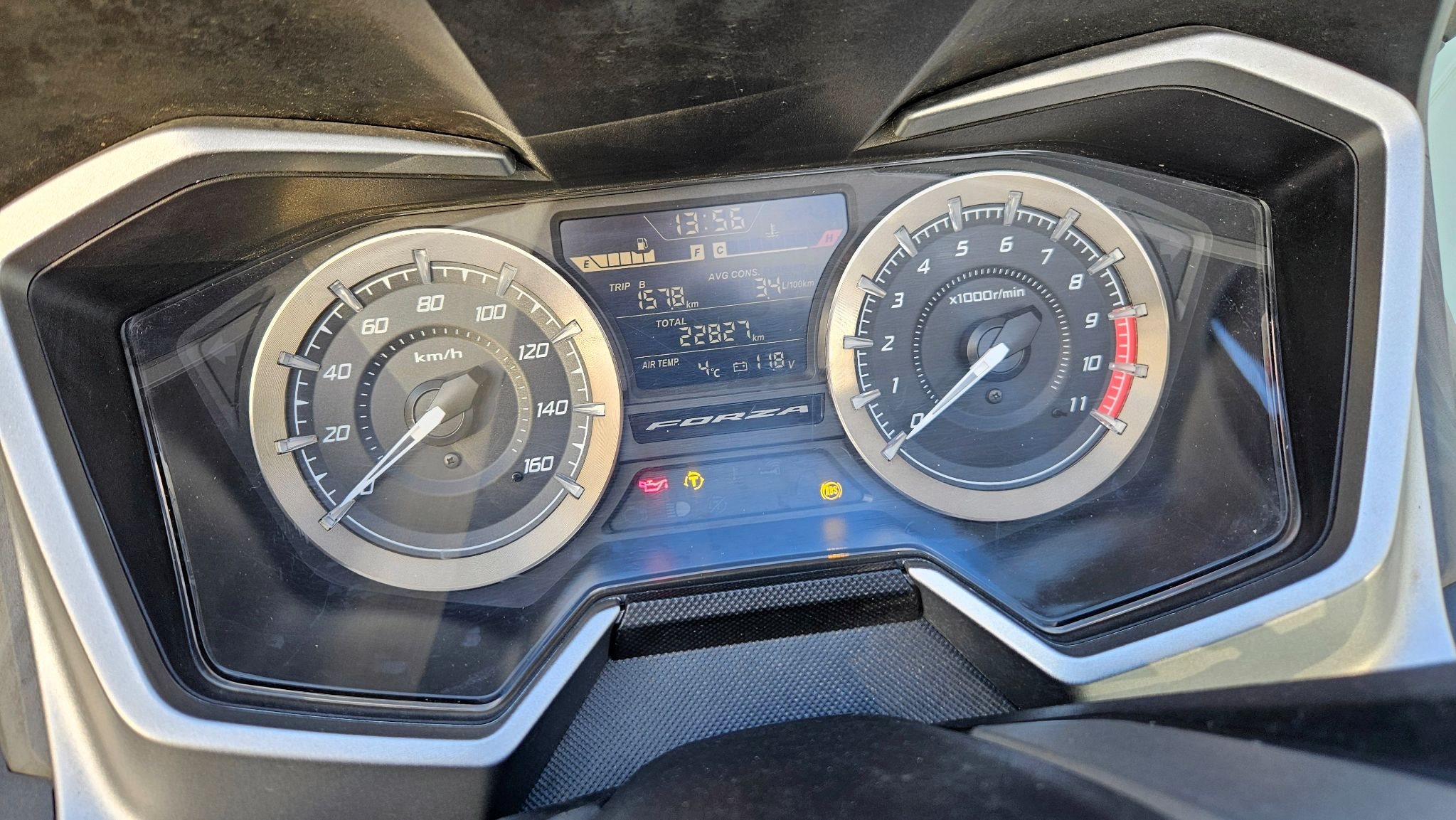 Honda Forza 350 mit 29 PS, Spitzengeschwindigkeit 129 km/h. Mein Verbrauch 3,3 l/100 km.