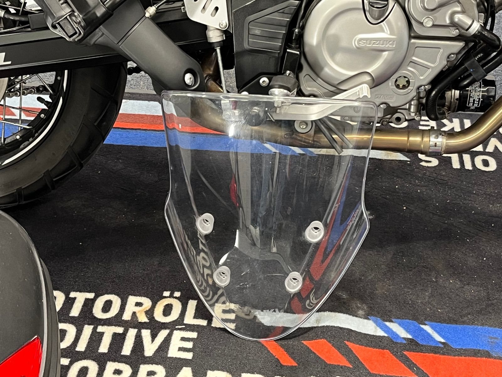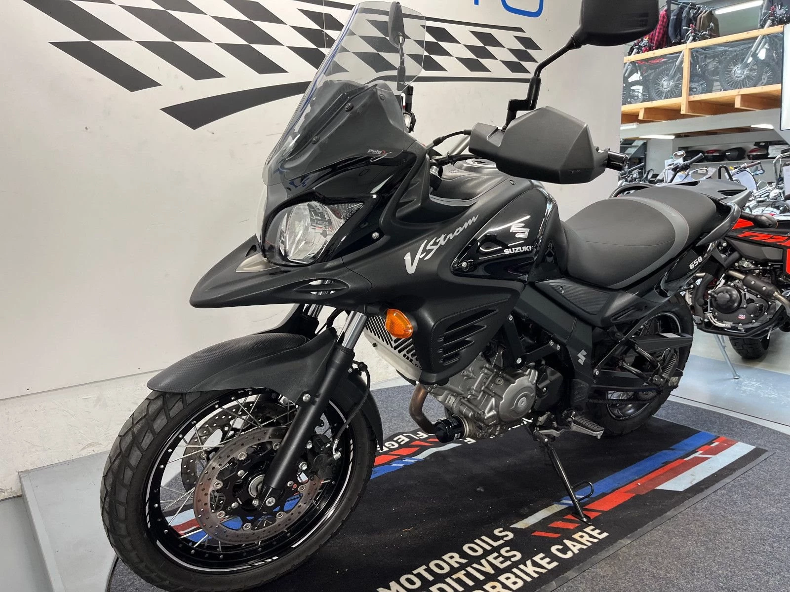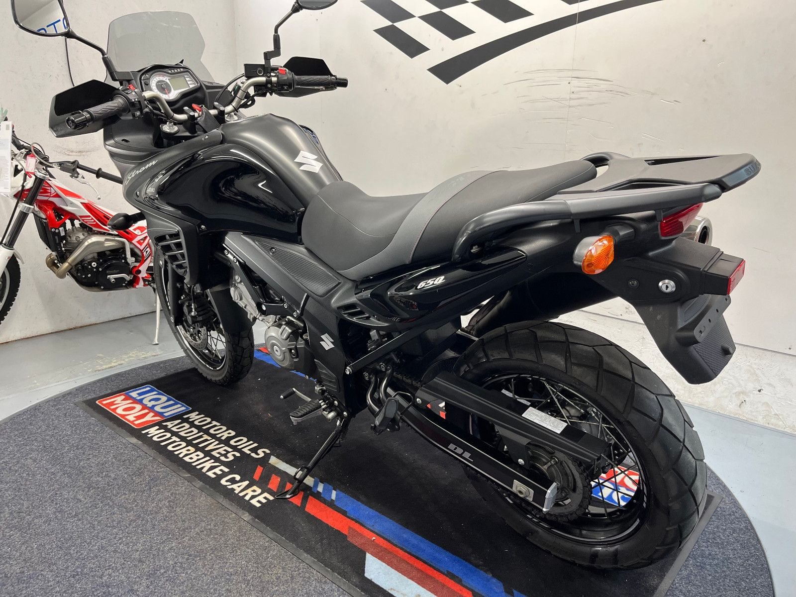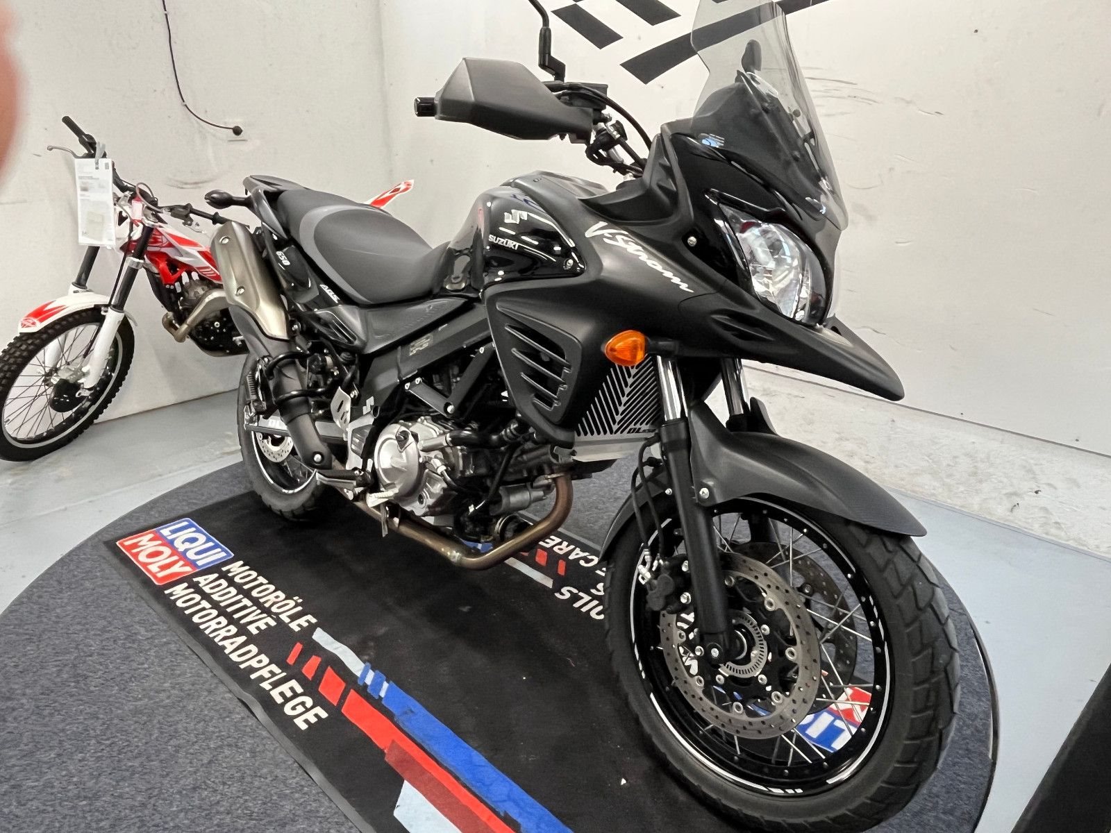 - Die Suzuki V-Strom 650 ist in einem gepflegten Zustand.